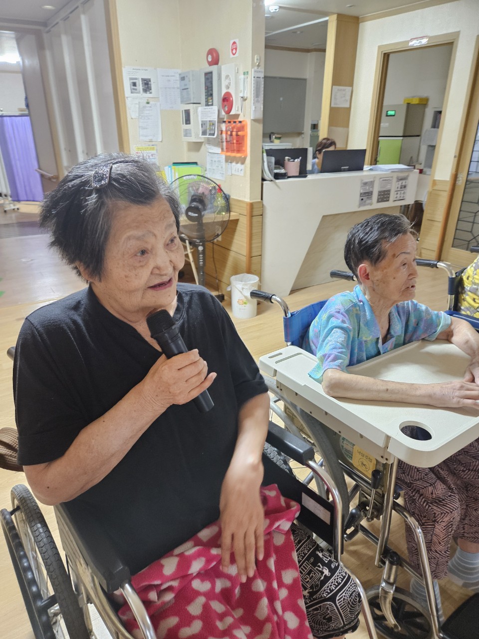 - 2025.08.18 0816(토) 여가활동 프로그램- 주말 노래자랑 시작 합니다. 오늘 즐겨 보아요~ 마이크 쟁탈전도 합니다. 와 짝짝짝 1