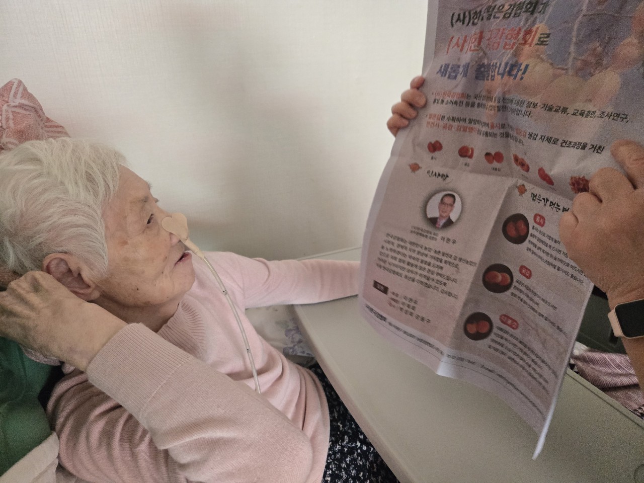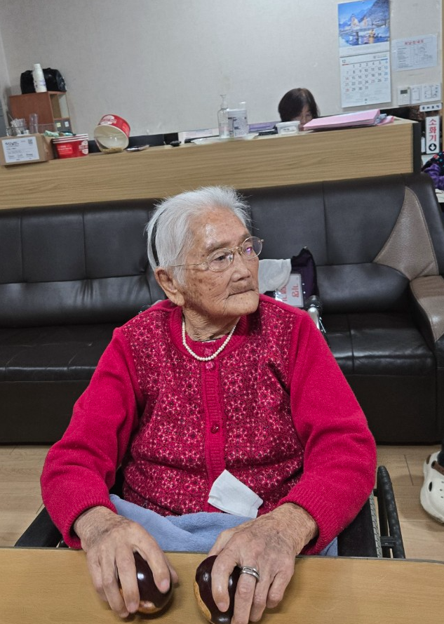 1. 어르신을 앉은 자세로 모신다.
