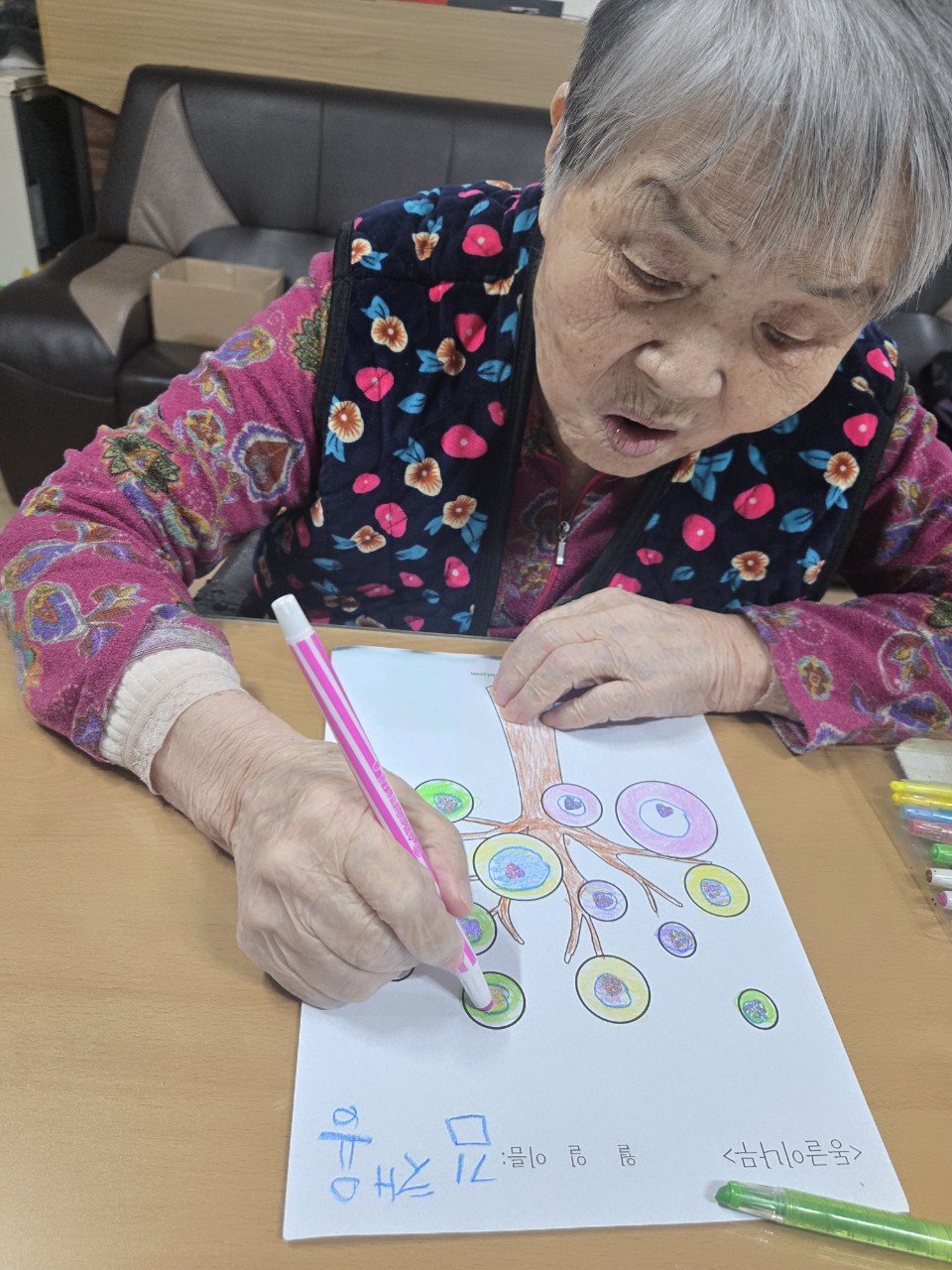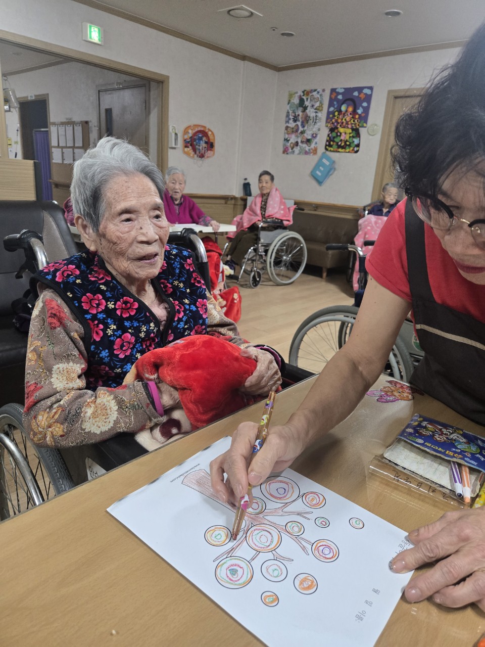3. 자유롭게 색을 칠하실 수 있도록 도와 드린다.