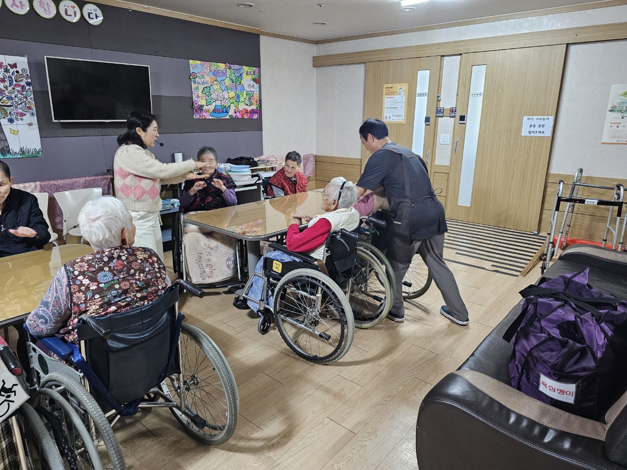 1. 어르신들을 프로그램실로 모신다