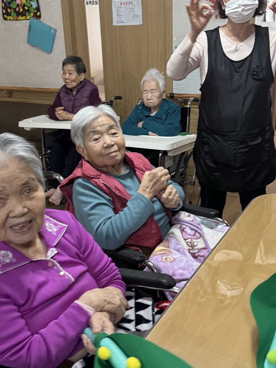 2. 어르신들이 음악을 들으며 편하게 휴식하시고, 마음이 편안해 지도록 돕는다.