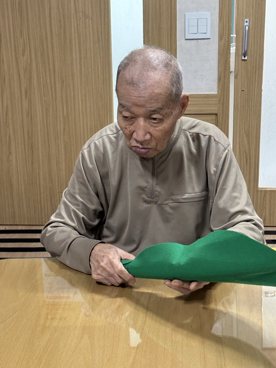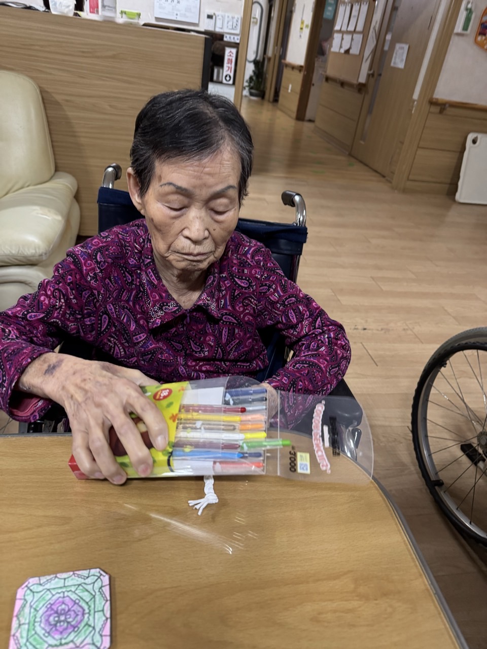 2. 준비된 그림도안과 색연필을 어르신께서 만져보게 한다.