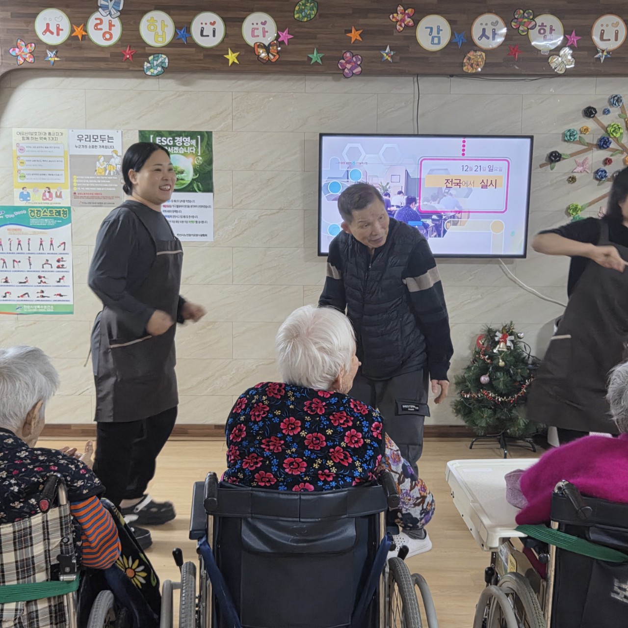 2. 어르신들이 음악을 들으며 편하게 휴식하시고, 마음이 편안해 지도록 돕는다.