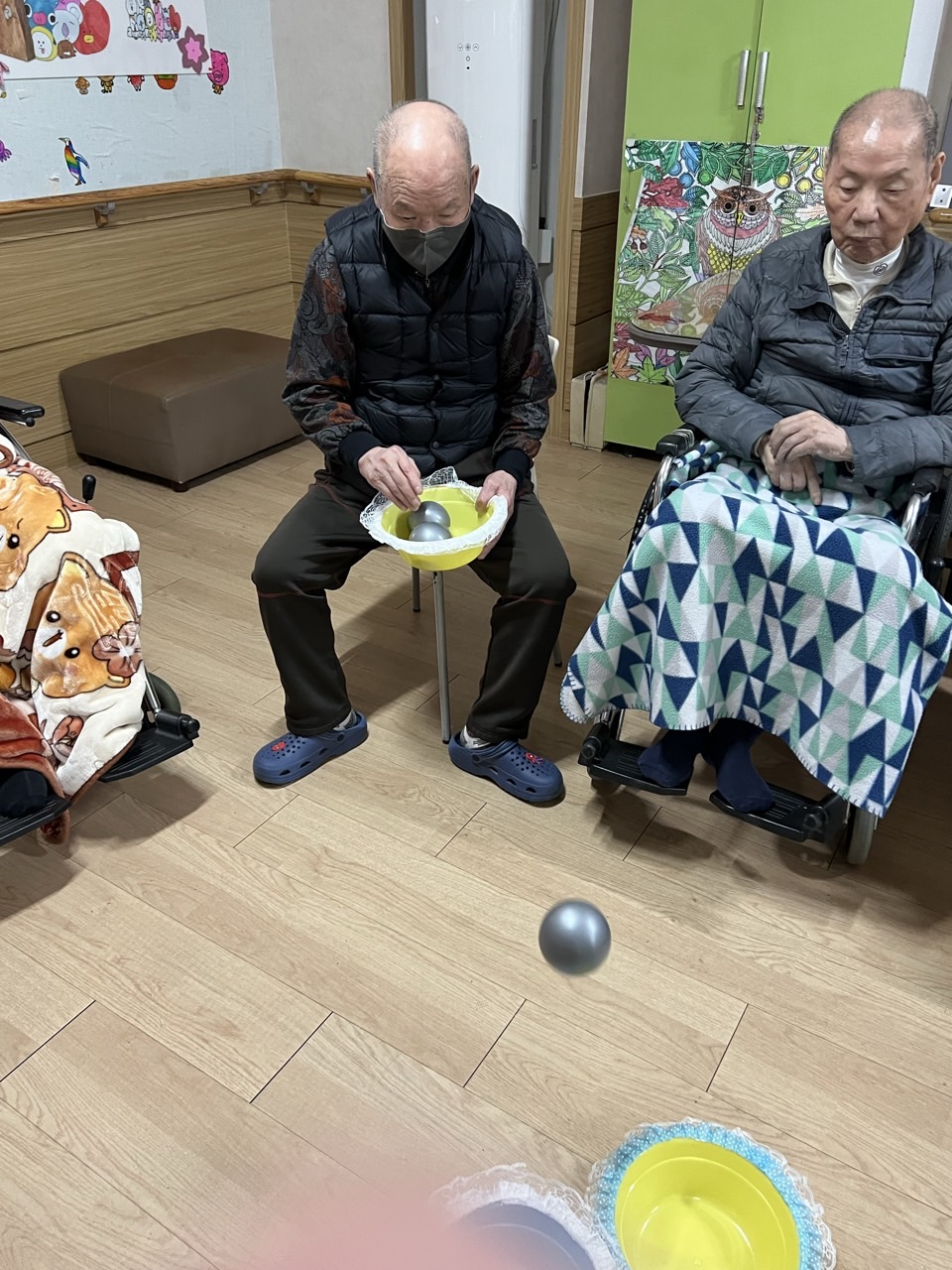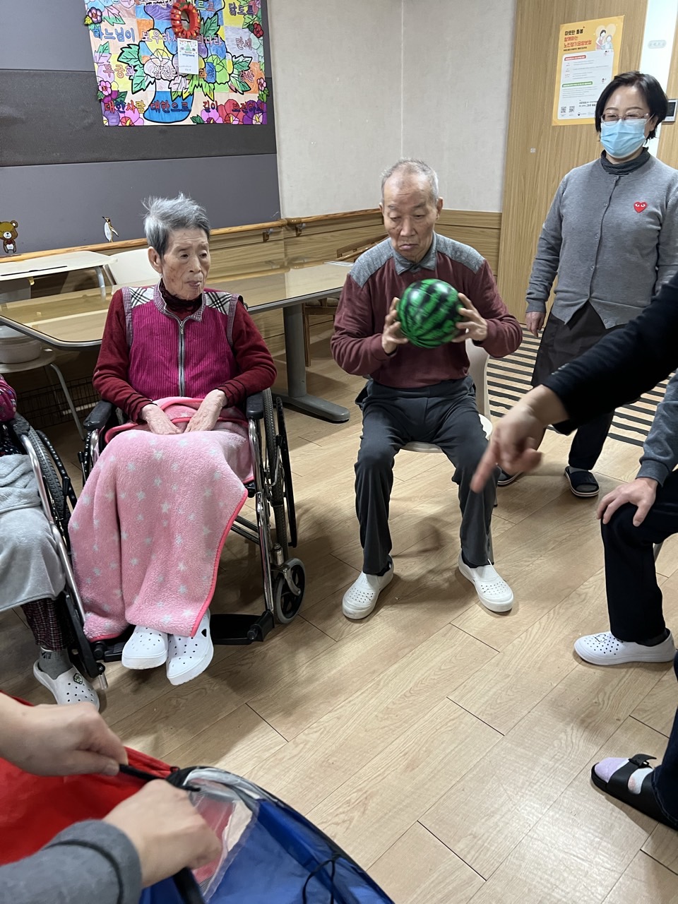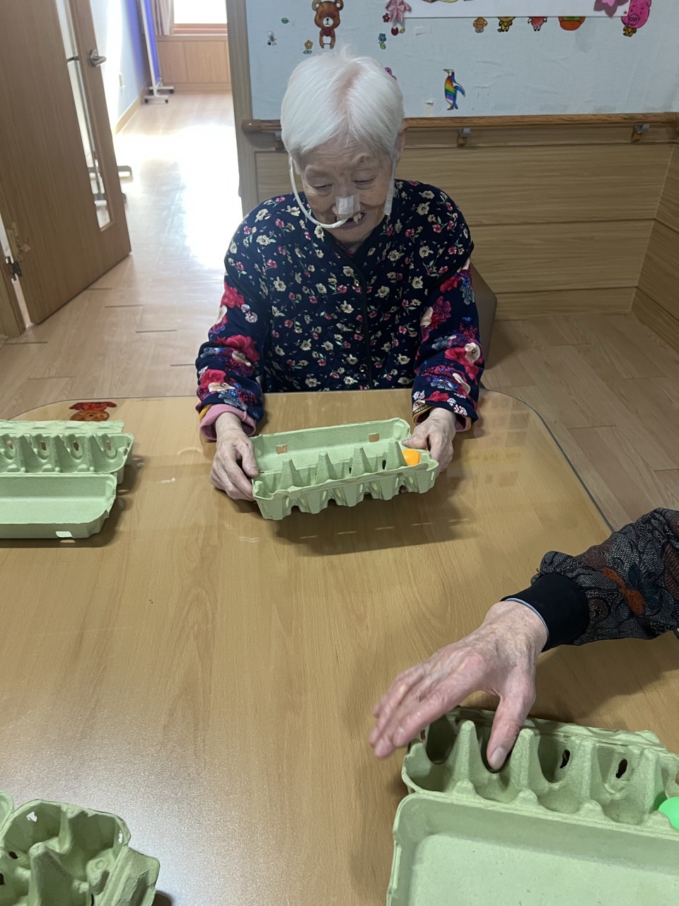 어르신들이 꿀벌이 되어 벌집에 꿀을 모아보는 활동을 해본다.