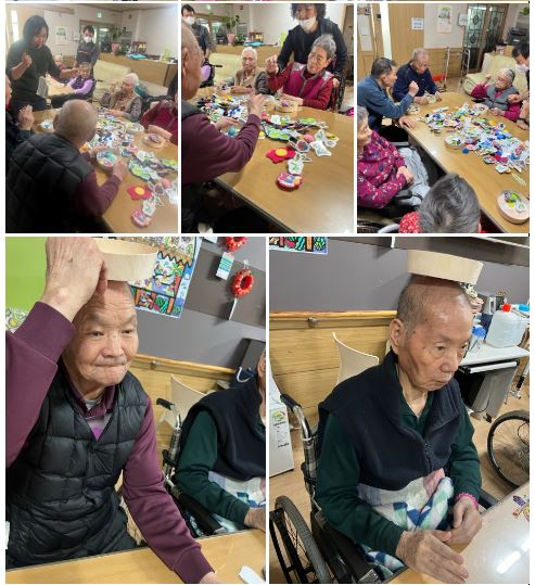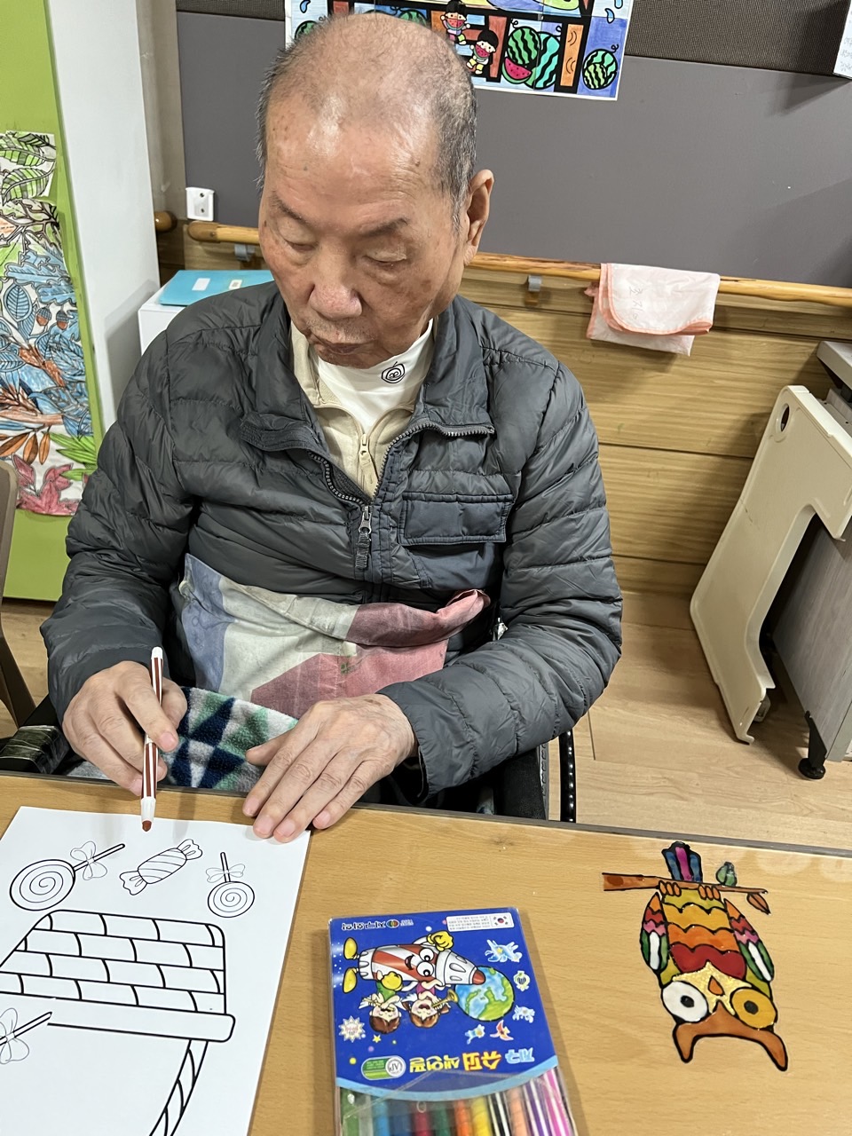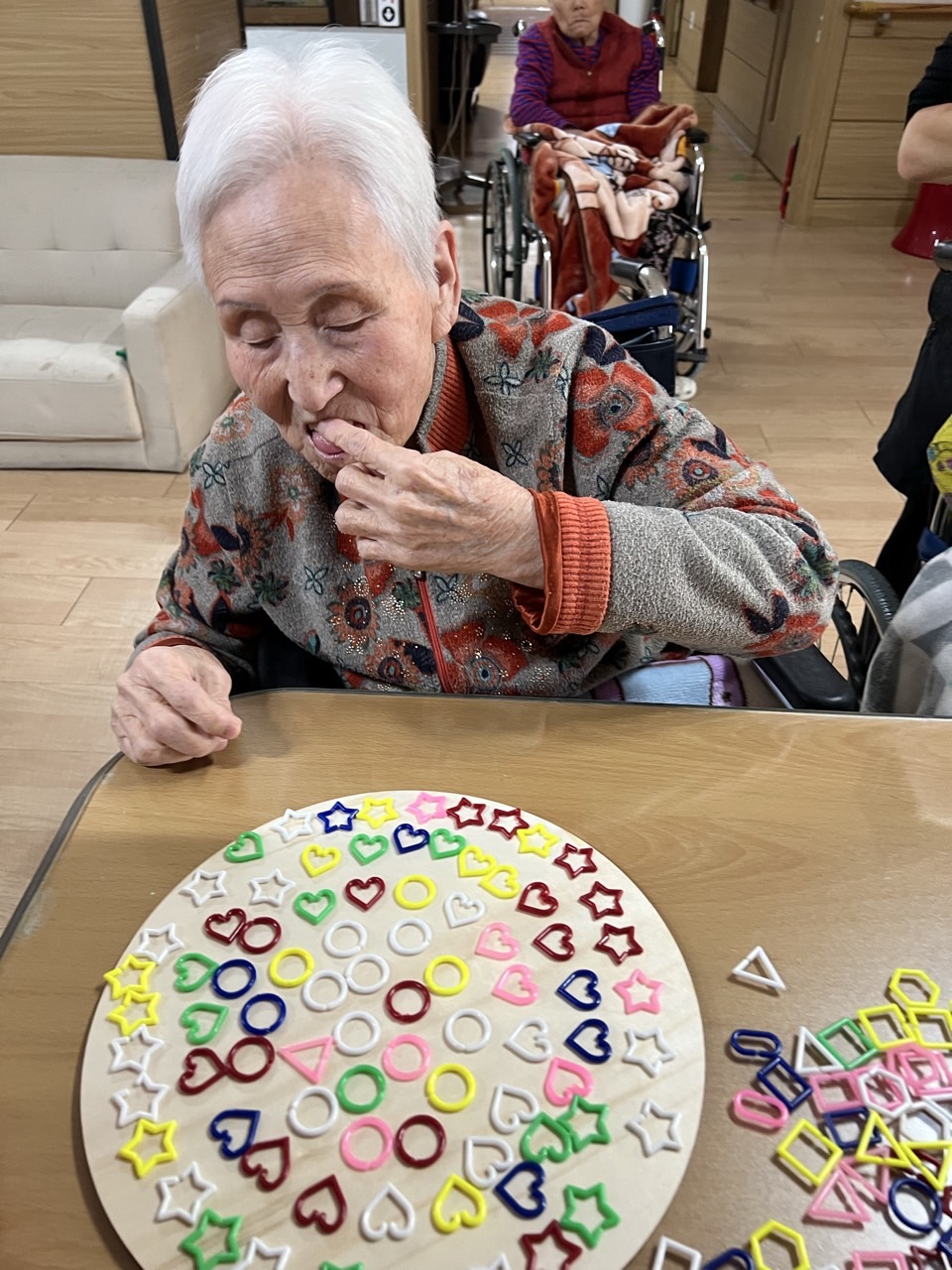 어르신들이 꿀벌이 되어 벌집에 꿀을 모아보는 활동을 해본다.