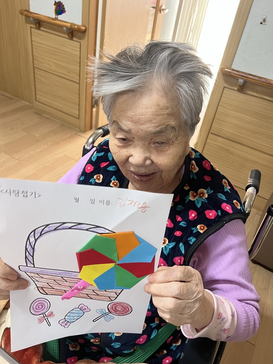 사탕 바구니에 사탕접는 순서를 기억하며 같이 접어보고 꾸며보는 활동을 해본다.