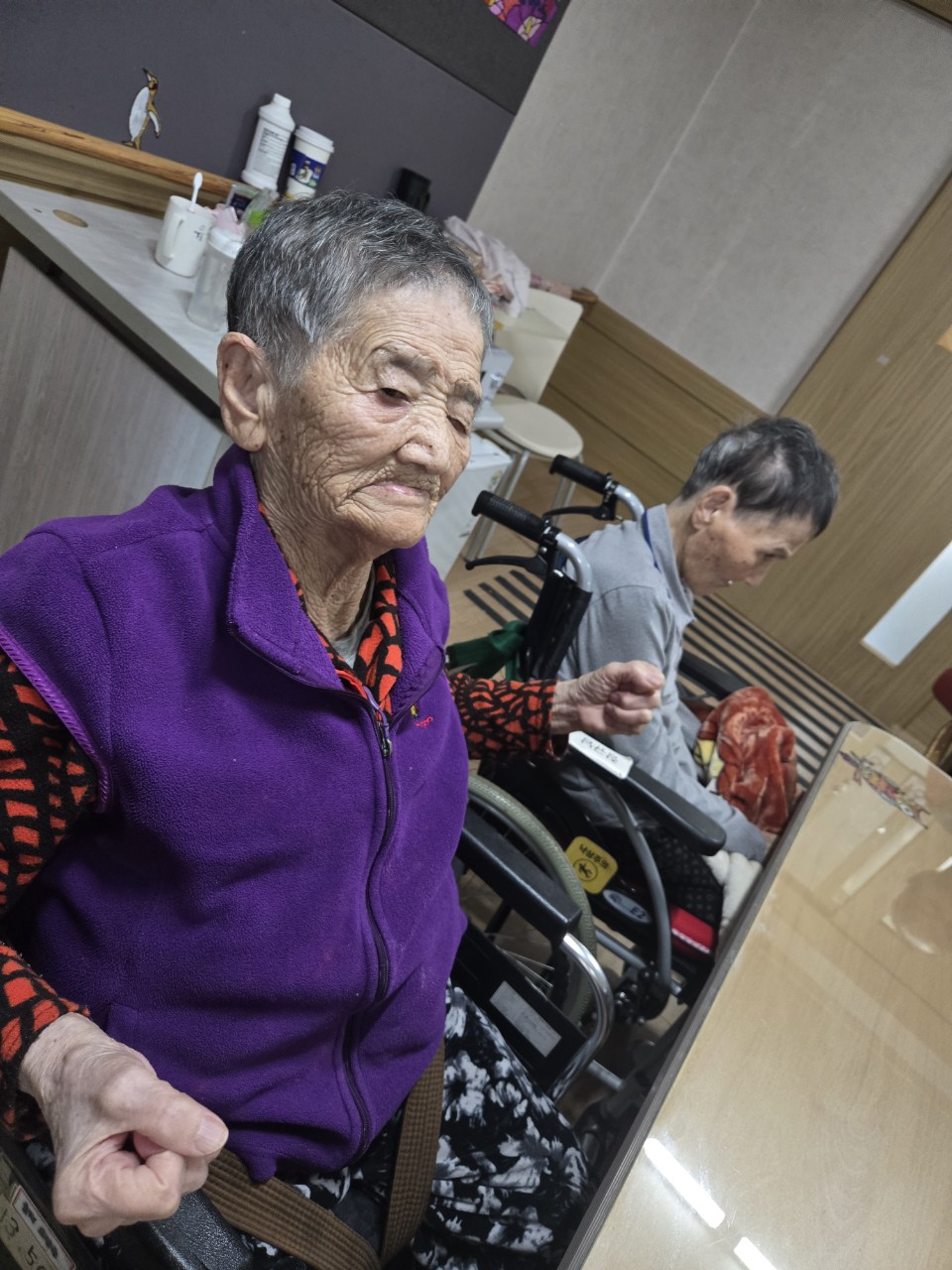 1. 어르신을 앉은 자세로 모신다.
