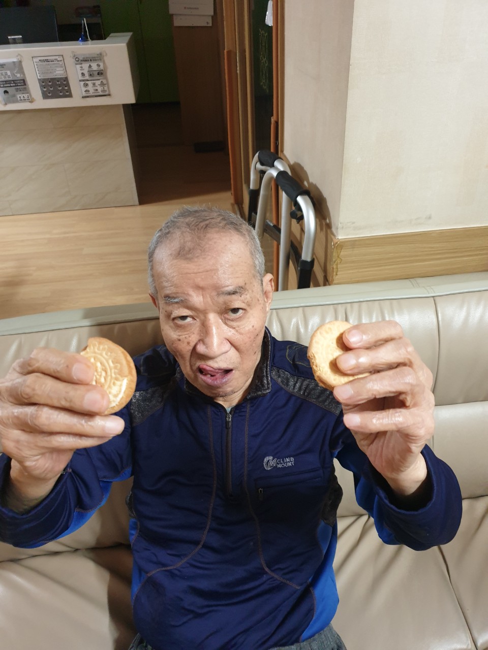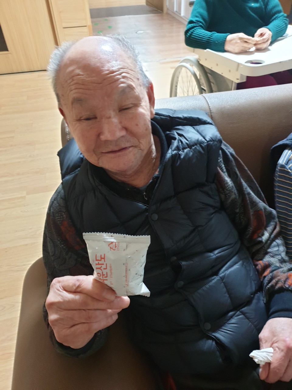 - 2025.01.24 0116(목) 초지어르신들 특식은 늘좋와하시는 크라운산도입니다 안녕히 주무세요~♡