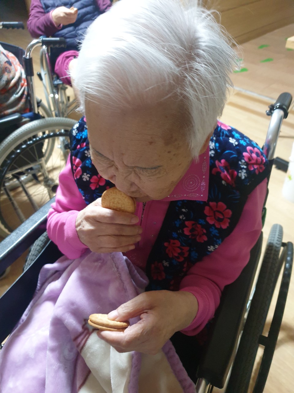 - 2025.01.24 0116(목) 초지어르신들 특식은 늘좋와하시는 크라운산도입니다 안녕히 주무세요~♡
