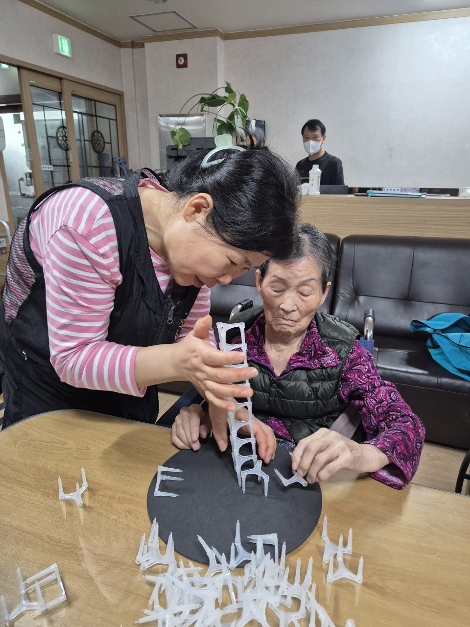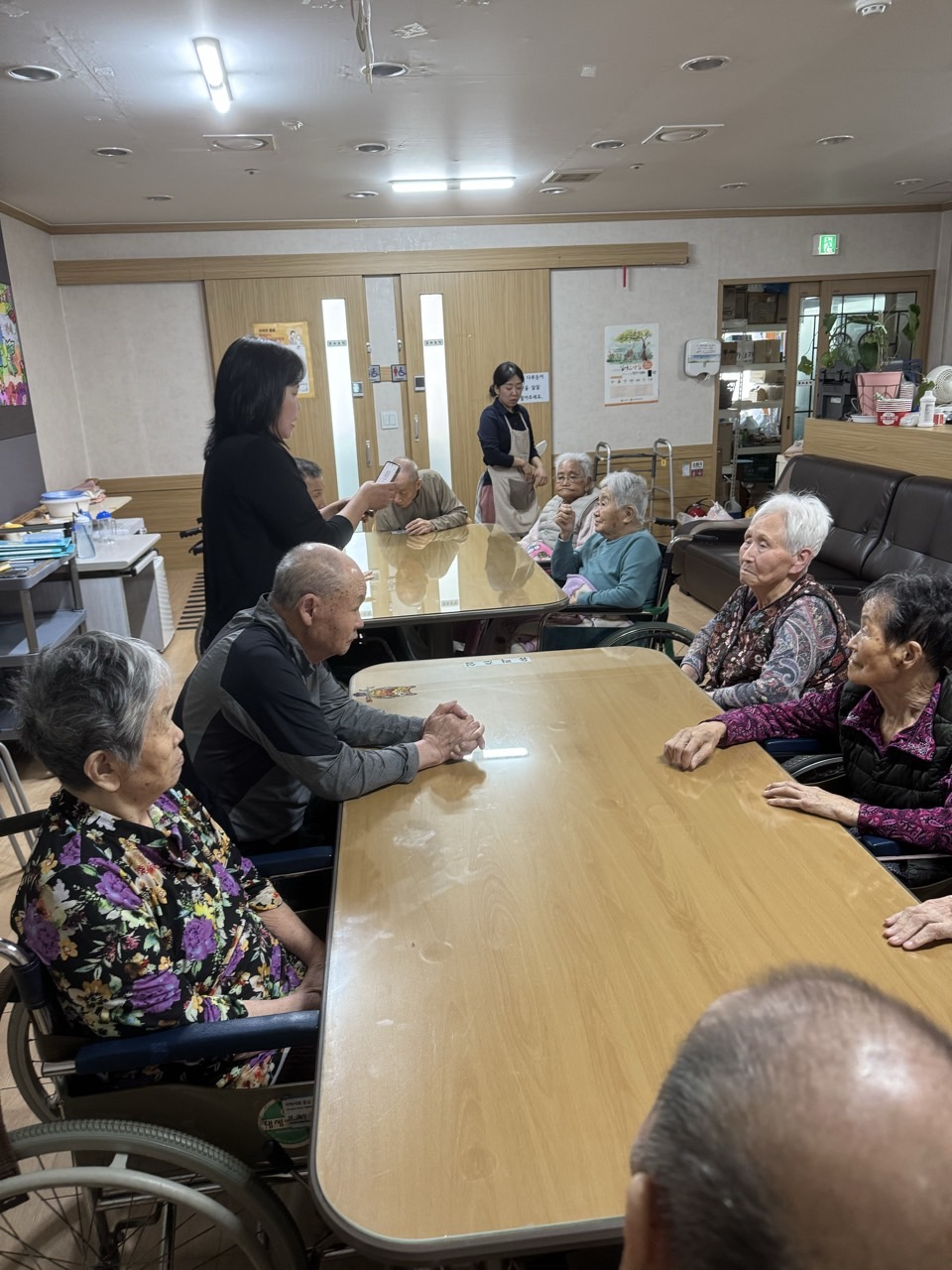 ① 어르신들을 중앙홀로 모신다. (모시기 힘든 어르신은 각방으로 찾아간다.)
