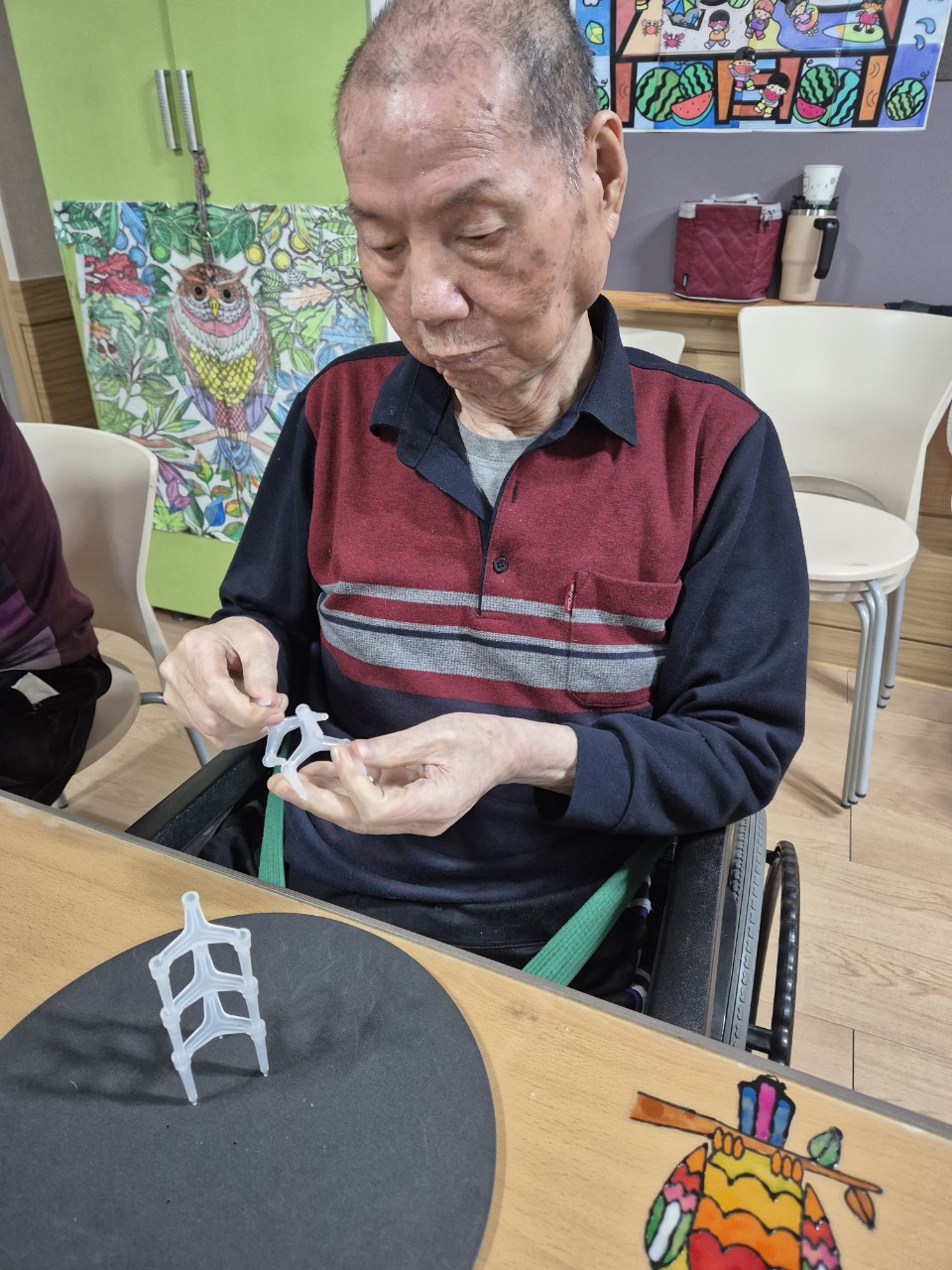 2. 작업과정에 대해 순서대로 기억해보며 오늘 작업에 과정에 대해 어르신이 어느 정도 기억하는지 확인한다.