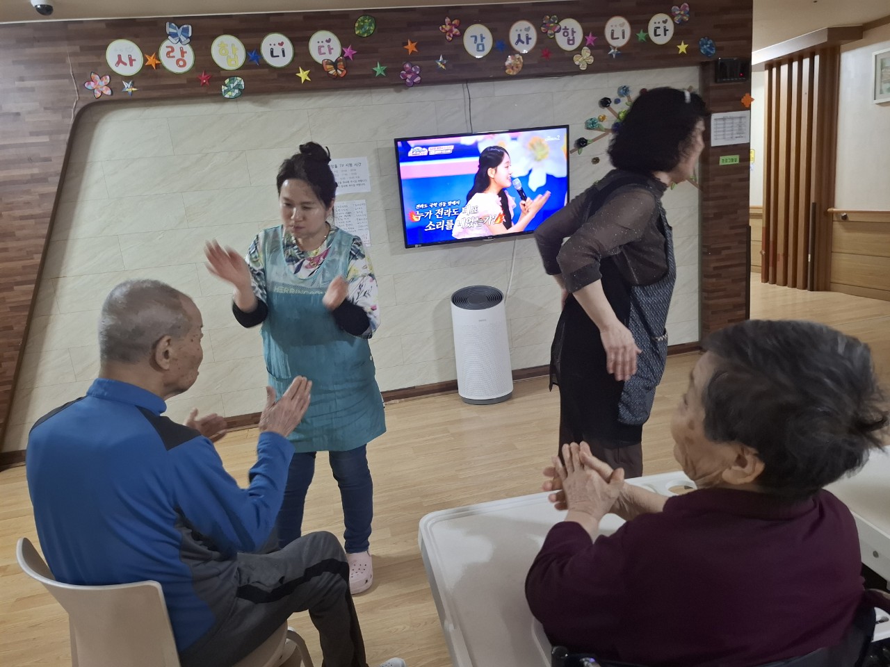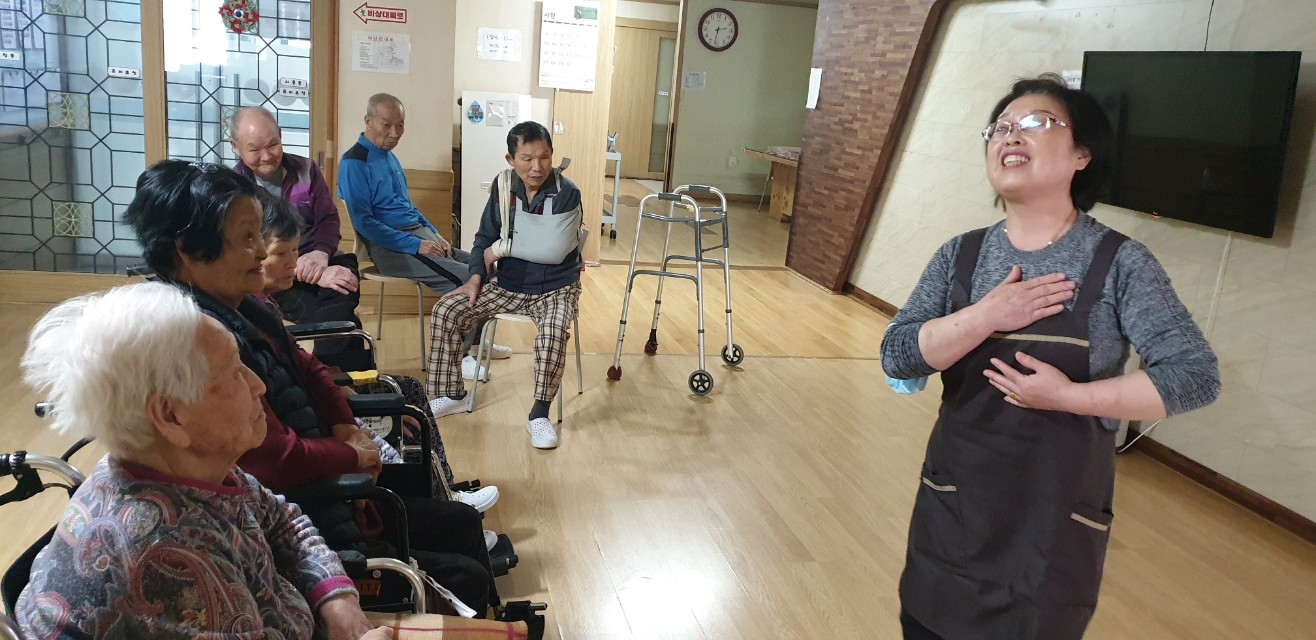 ③ 앞에 선생님이 하시는 것을 보고 따라 하실 수 있도록 유도 한다.
