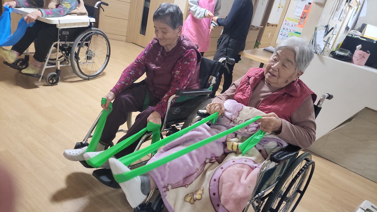 ② 어르신들에게 탄성밴드를 배분해 드린다.