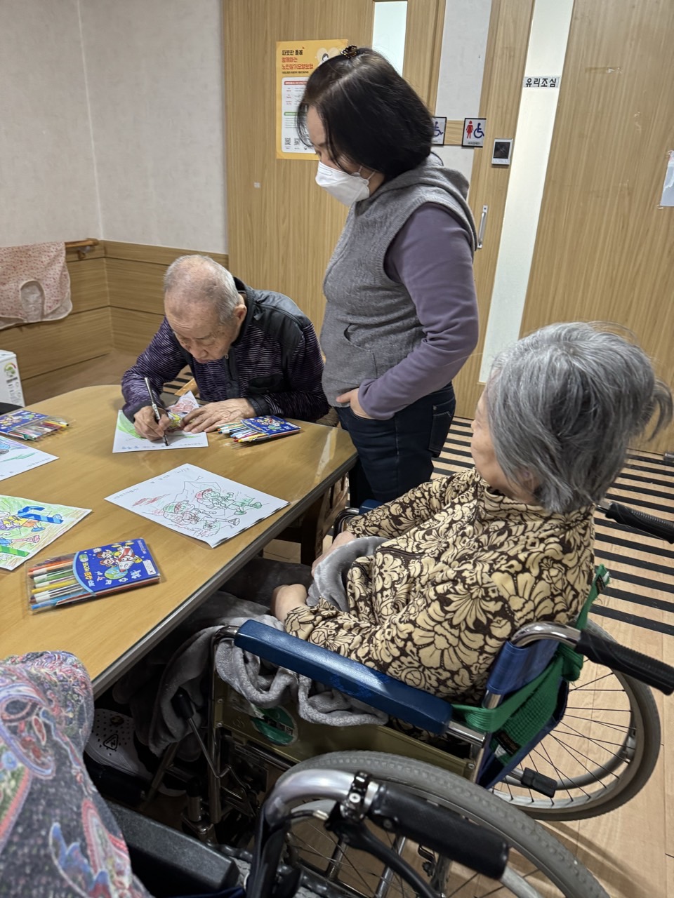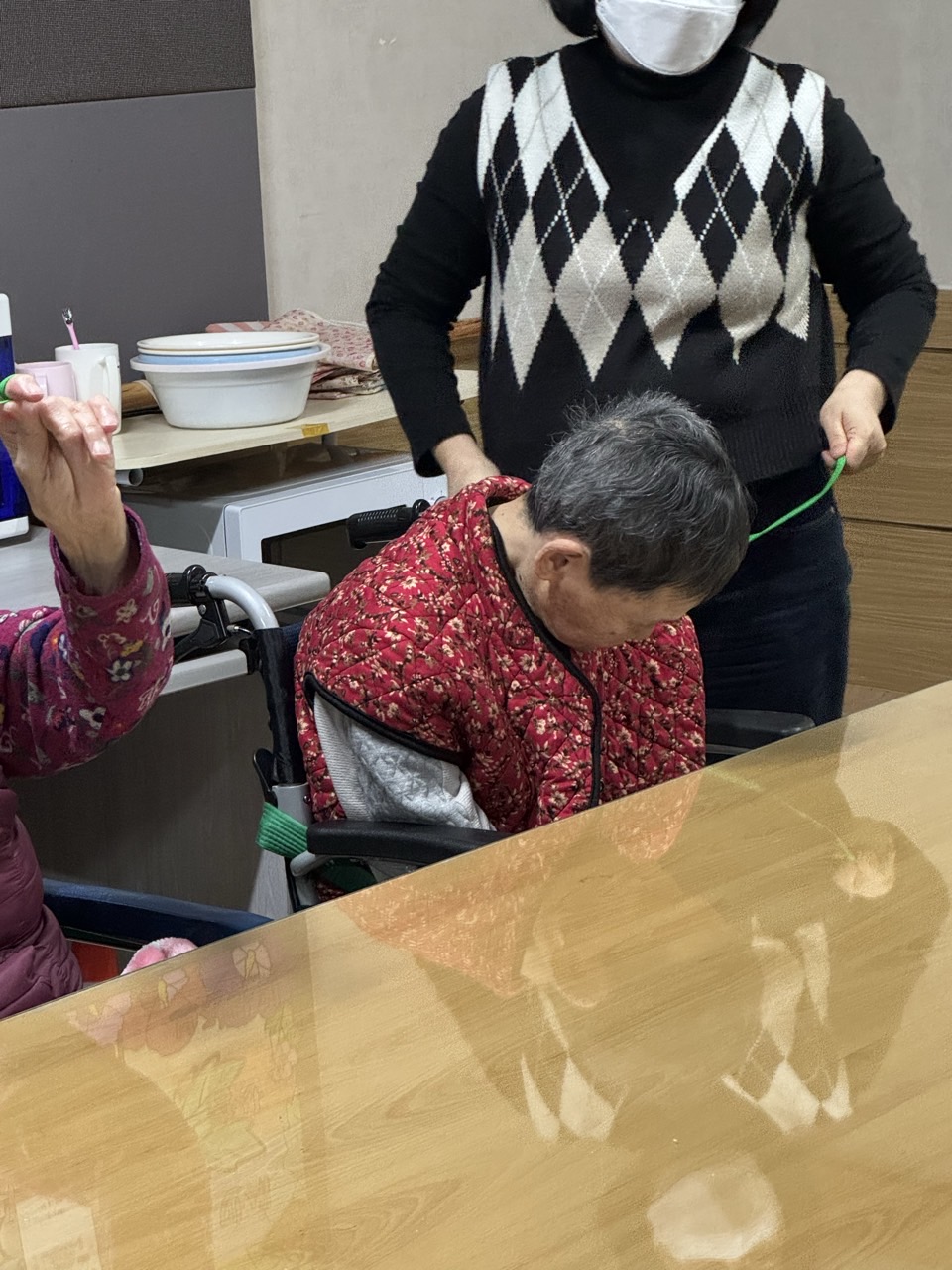 ④ 옆에서 어르신을 격려해 드리고 힘든 부분은 옆에서 도와드린다.