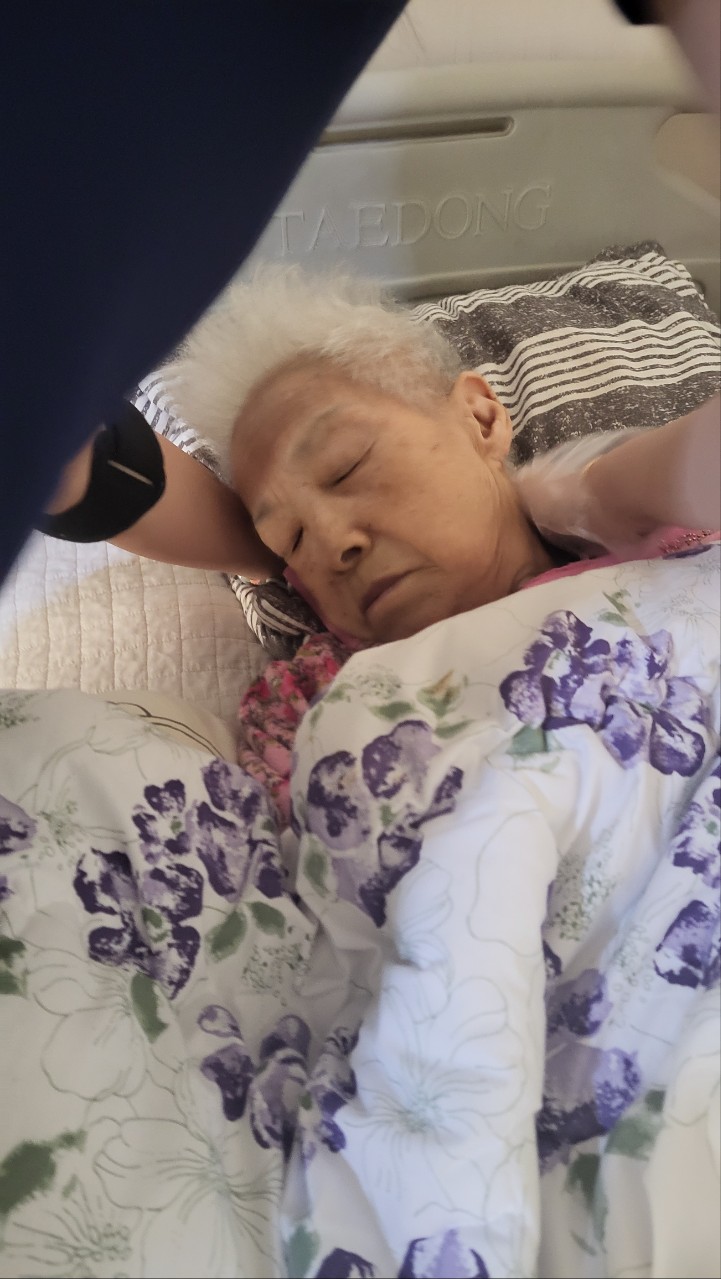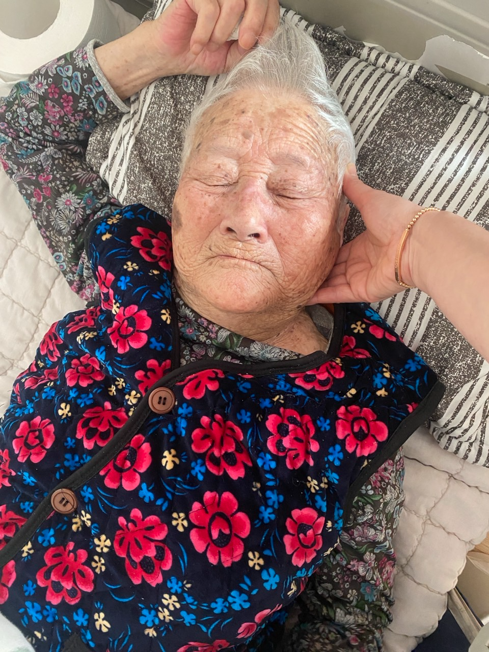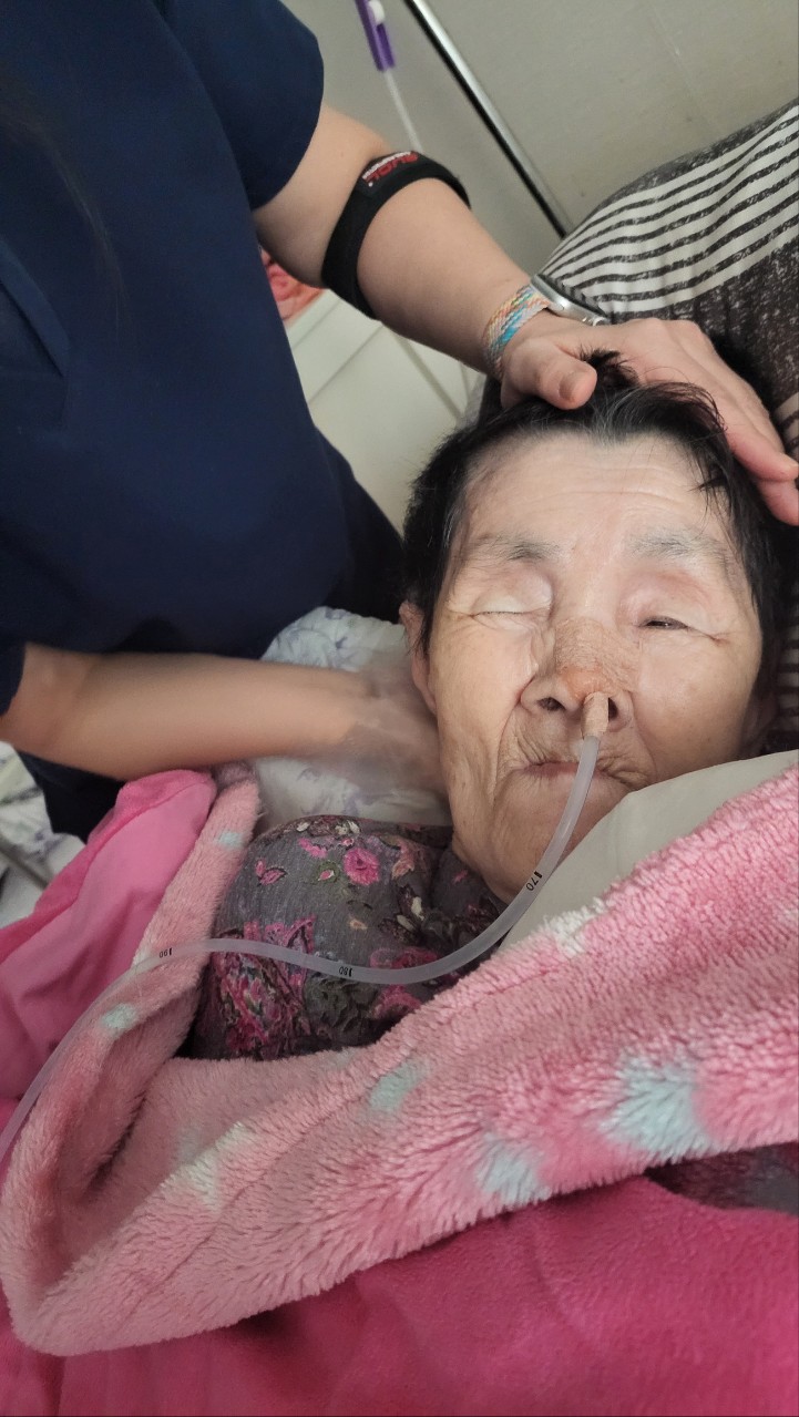 ② 진행 : 코에 오일 냄새를 맡게 하고, 관자놀이에 롤링기법으로 마사지를 해준다.