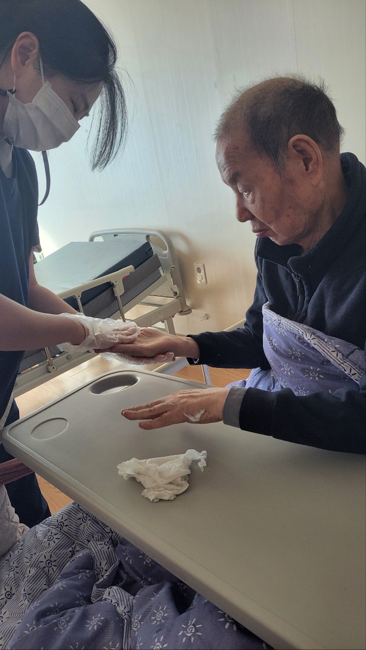 ① 손마사지 순서는 왼쪽→오른쪽 순으로 실시한다.