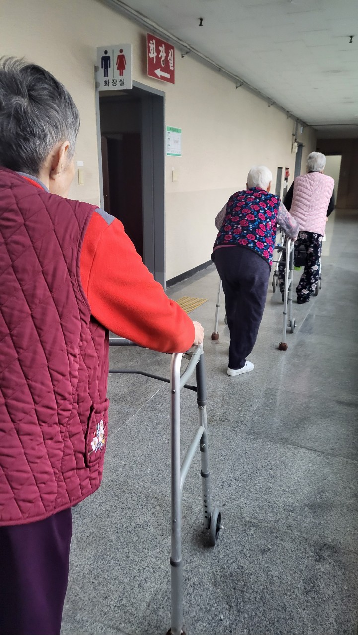 ◦요양보호사는 되도록 스스로 걷도록 격려하고, 불가피한 경우에만 도와준다.