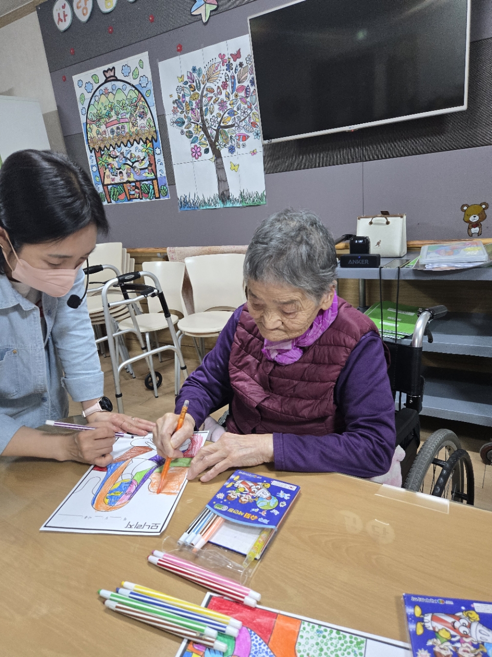 동화책을 읽어드리며 어린 시절을 추억하고 시각, 청각을 자극하여 인지기능을 높이며 이야기를 감상을 하며 상상력을 자극하고 유대감 형성을 한다