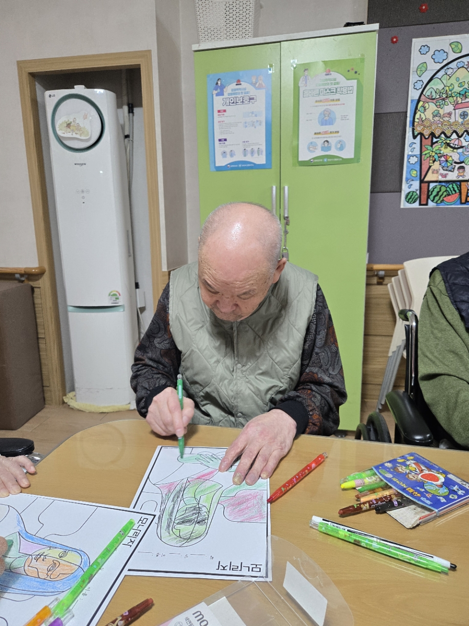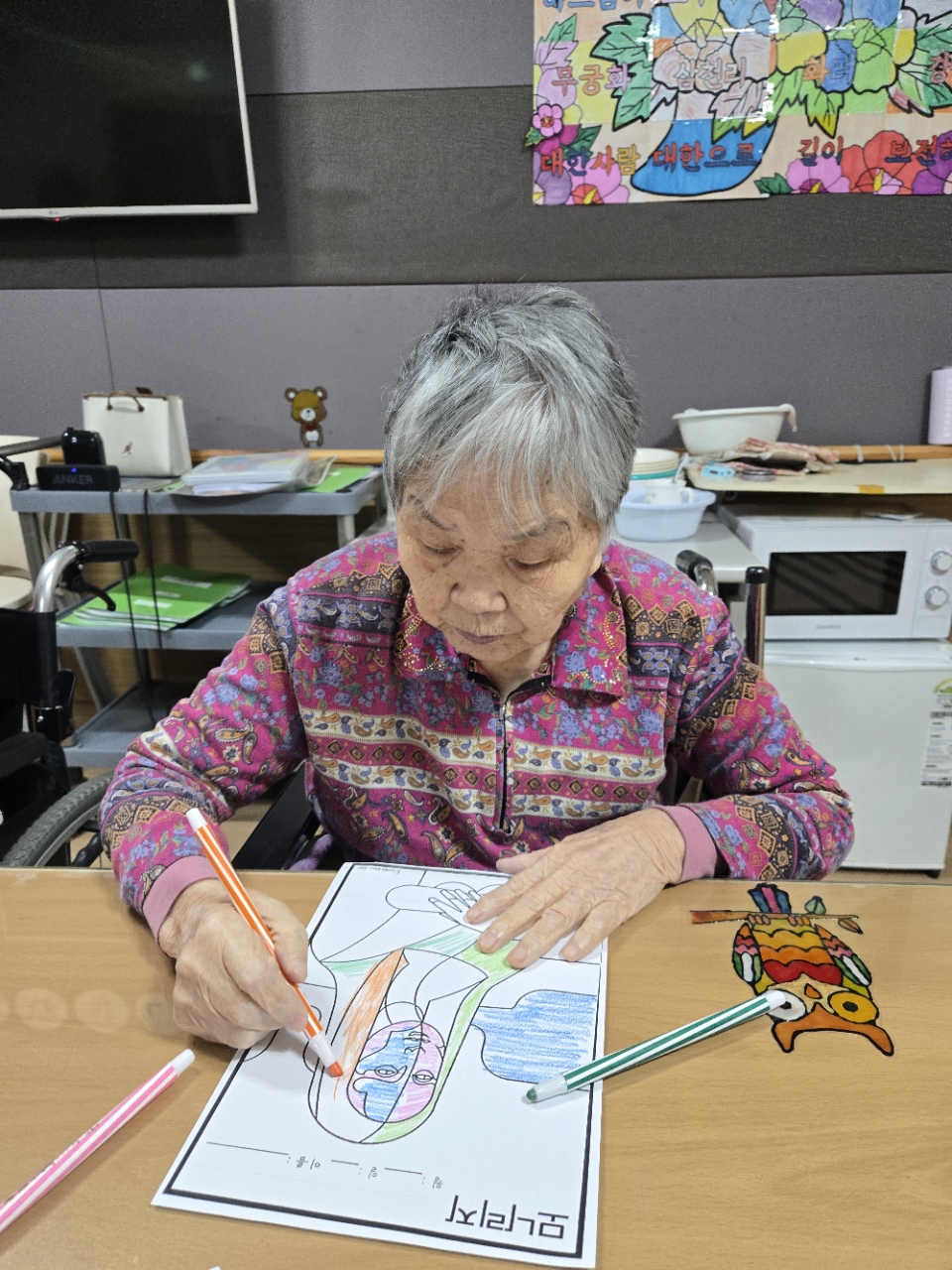 손가락을 사용하여 색연필을 쥐는 소근육 운동과 여러가지 색감을 보는 시각적 자극으로 인지기능향상을 꾀하고 집중력을 기르는 기대효과가 있다.