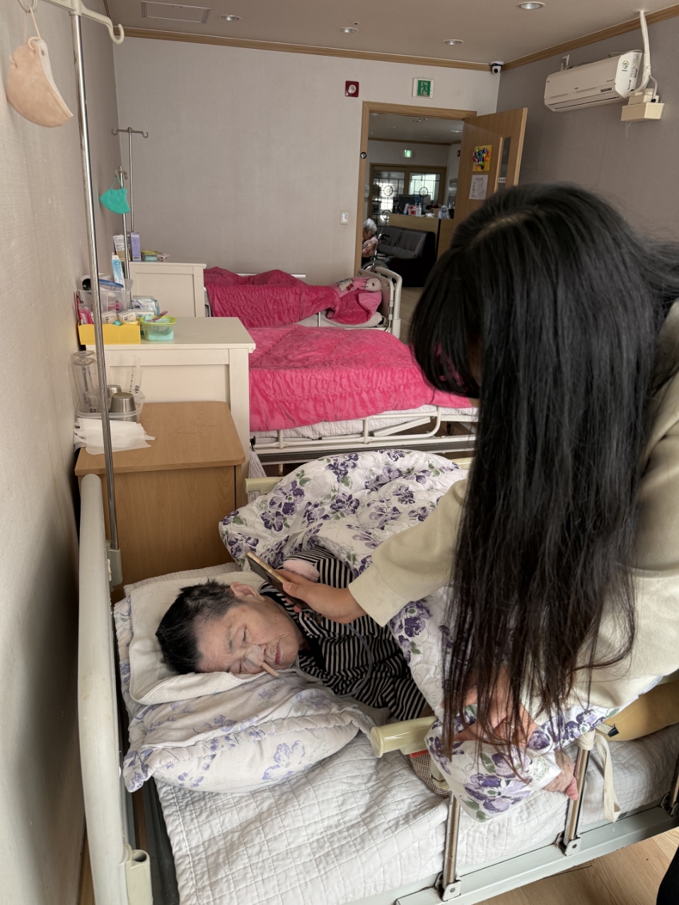 오늘은 아로마오일을 이용하여 후각을 자극하여 추억을 향수하는 와상 어르신의 신체 기능향상을위한 아로마 활동 프로그램시간입니다.