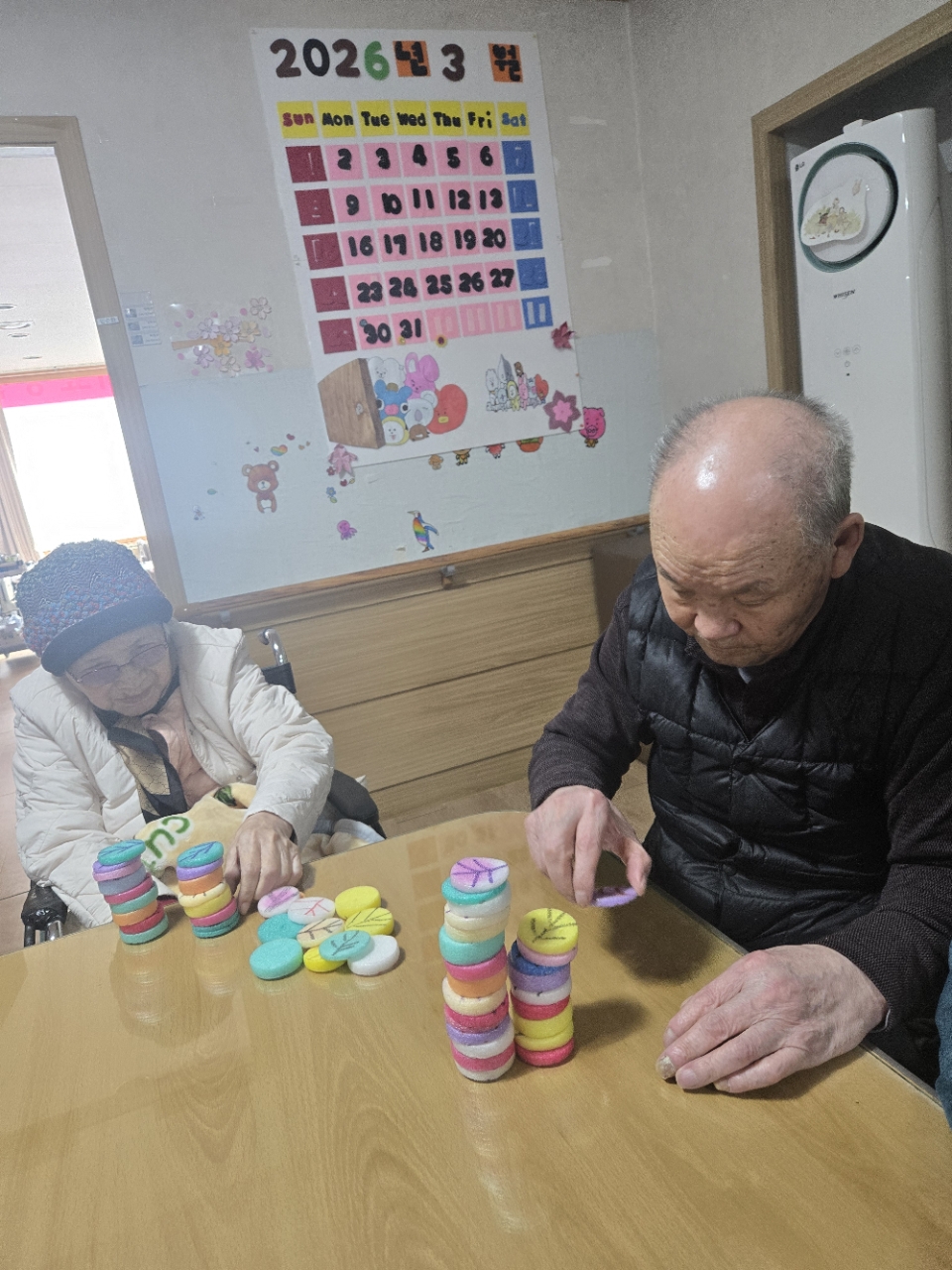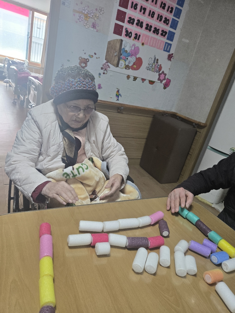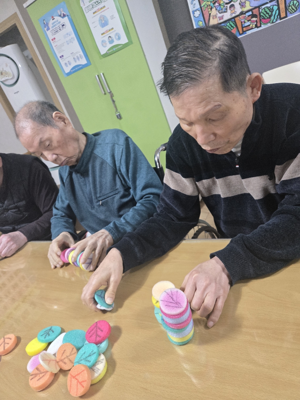 오늘 프로그램은 모형과 여러가지 색깔을 분류하여 창의적 모형을 만들어 보는 창의력 인지 프로그램 시간입니다.