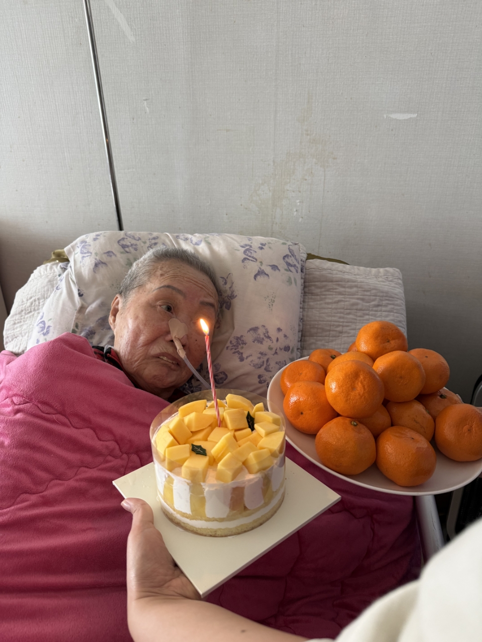 생신 축하 노래를 함께 부르며 축하 인사를 드리고 케이크 촛불을 끄는 시간을 가졌습니다.