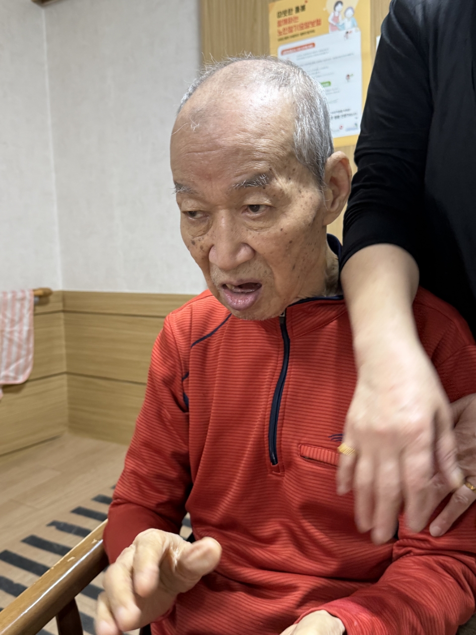 먼저 어르신을 앉은 자세로 모십니다.