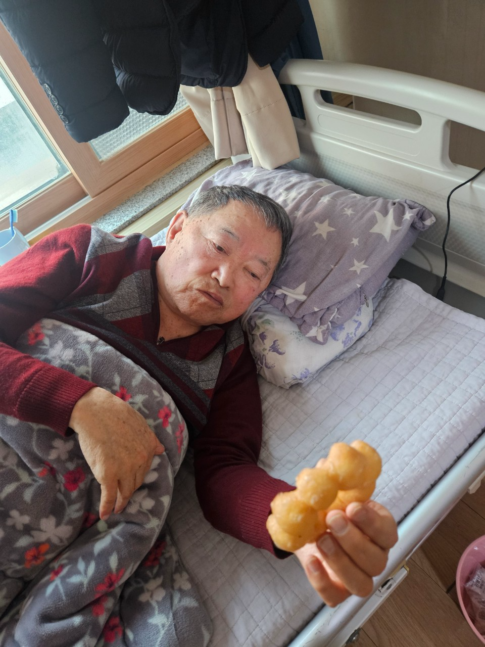 0316(월)초지어르신들 야간 간식은요~부드러운 동그랑 도너츠입니다 수급자 진숙어르신은 컵라면 영기어르신은 부식 갈비탕입니다