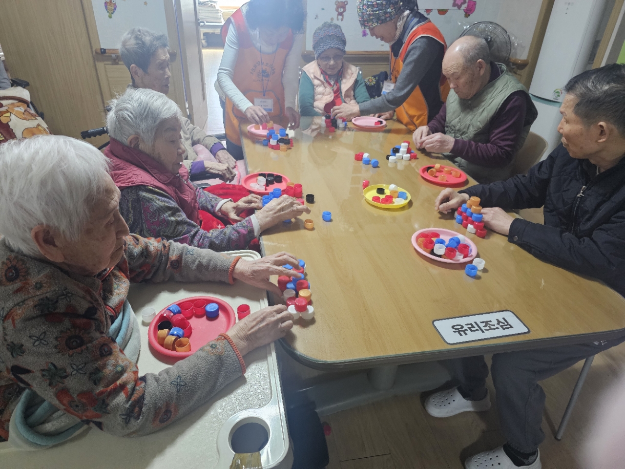 어르신들을 프로그램실로 모시고 인사를 나눈 뒤 온몸체조와 손유희를 통해 몸과 손 근육을 가볍게 풀어드렸습니다.