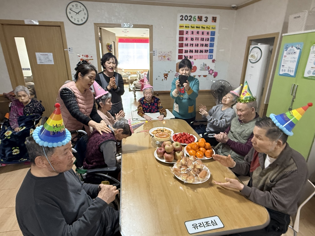 어르신들과 함께 박수로 축하하며 즐거운 분위기 속에서 따뜻한 생신잔치를 마무리하였습니다.