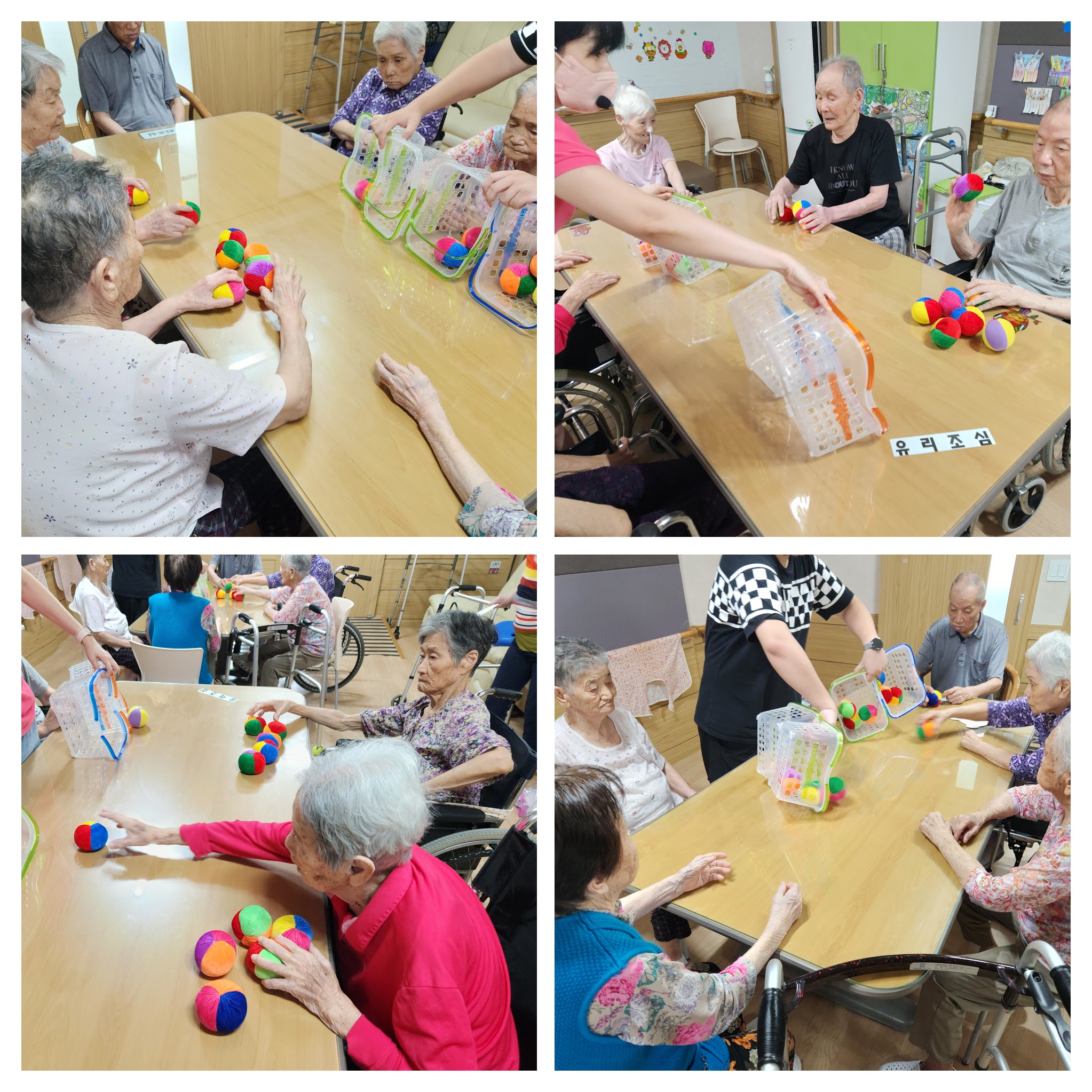 알루미늄 접시에 수수깡을 튕겨보시며 집중력 있게 율동하시고 빵클립을 이어끼우시며 손가락 운동을 많이 하셨습니다.^^
