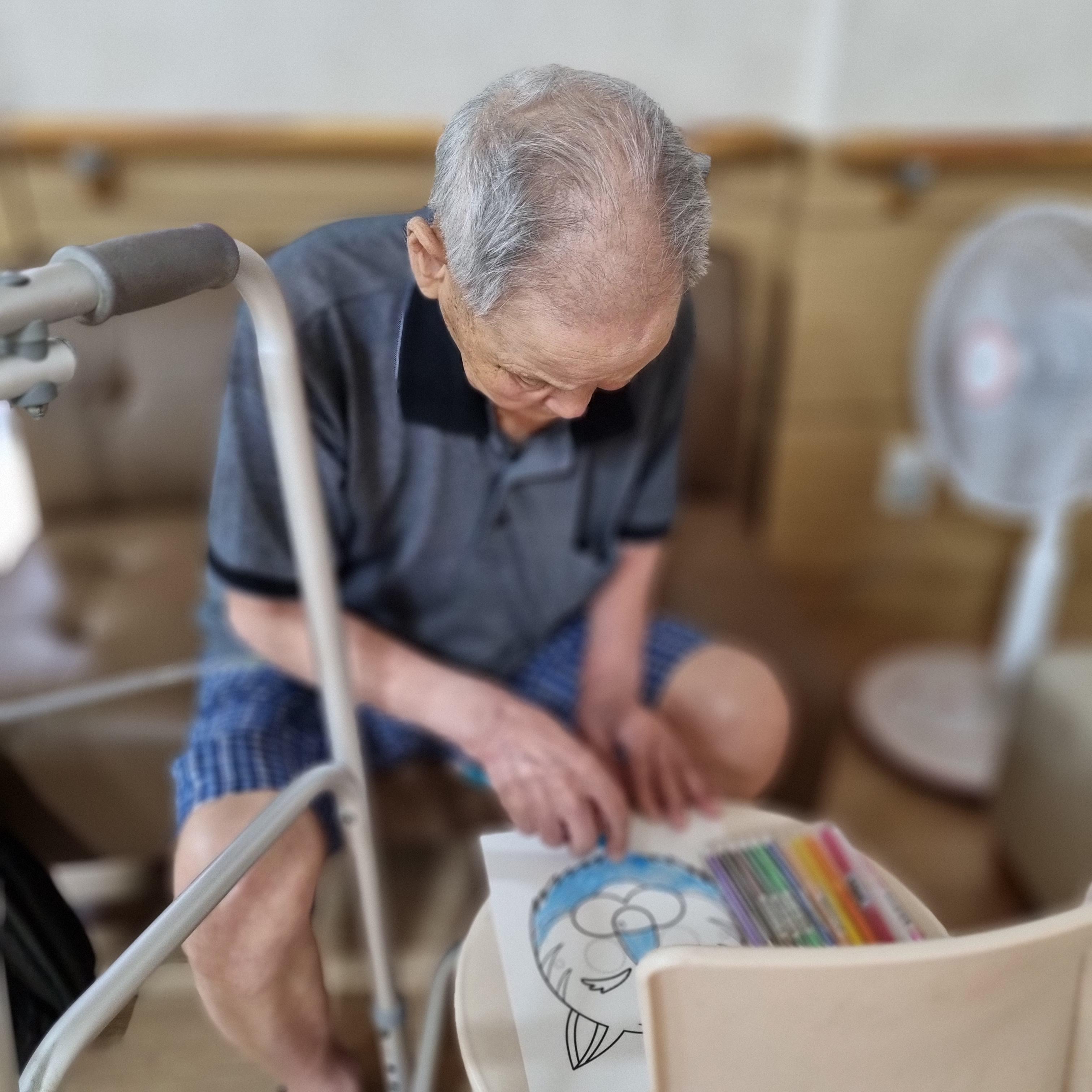 오늘 오후에는 어르신 손바닥을 대고 그려 물감으로 찍기를 하였습니다