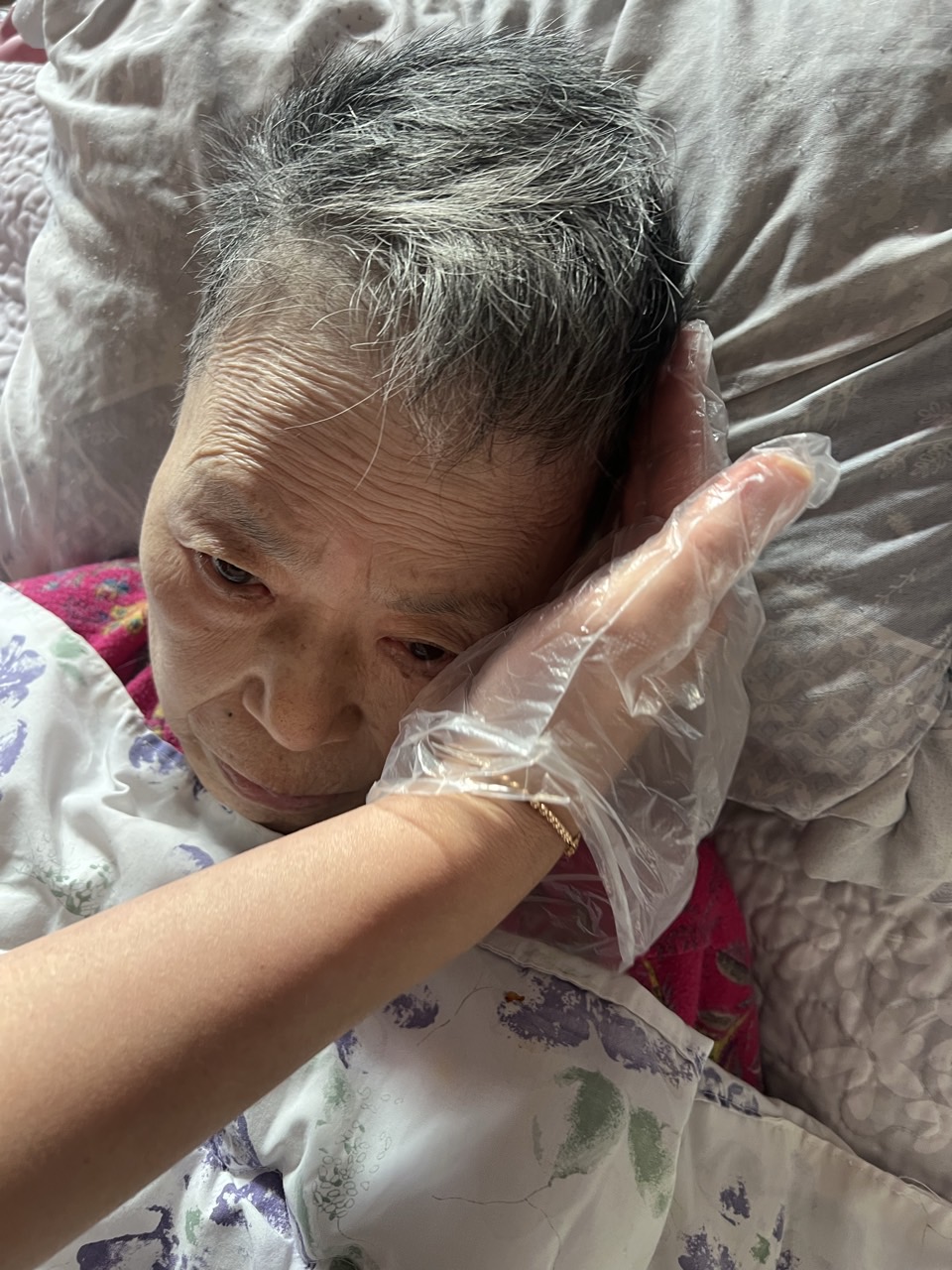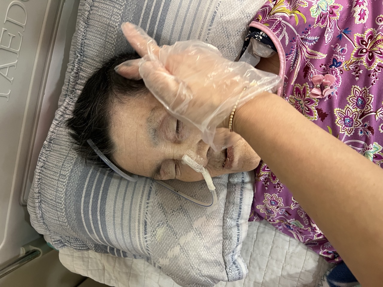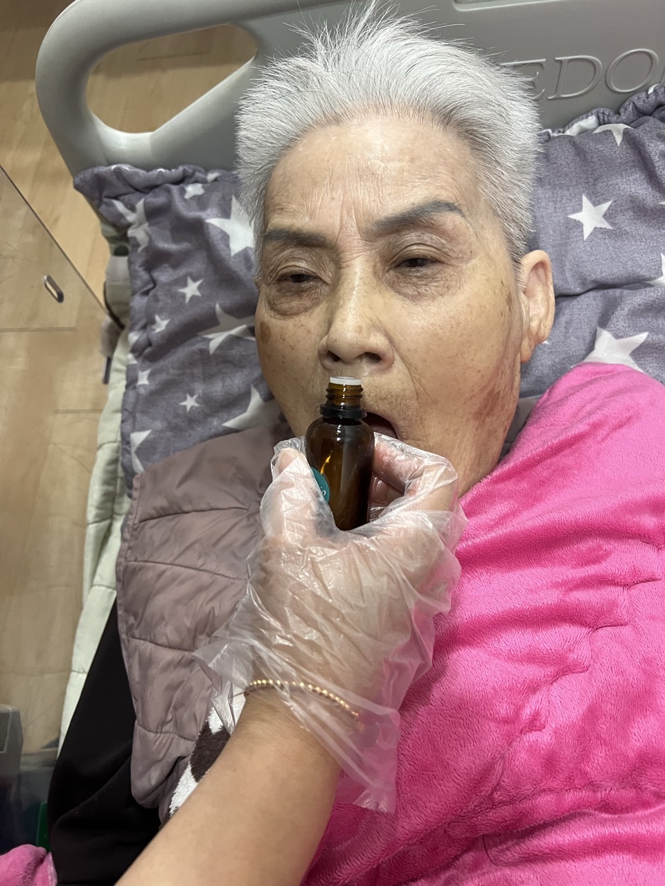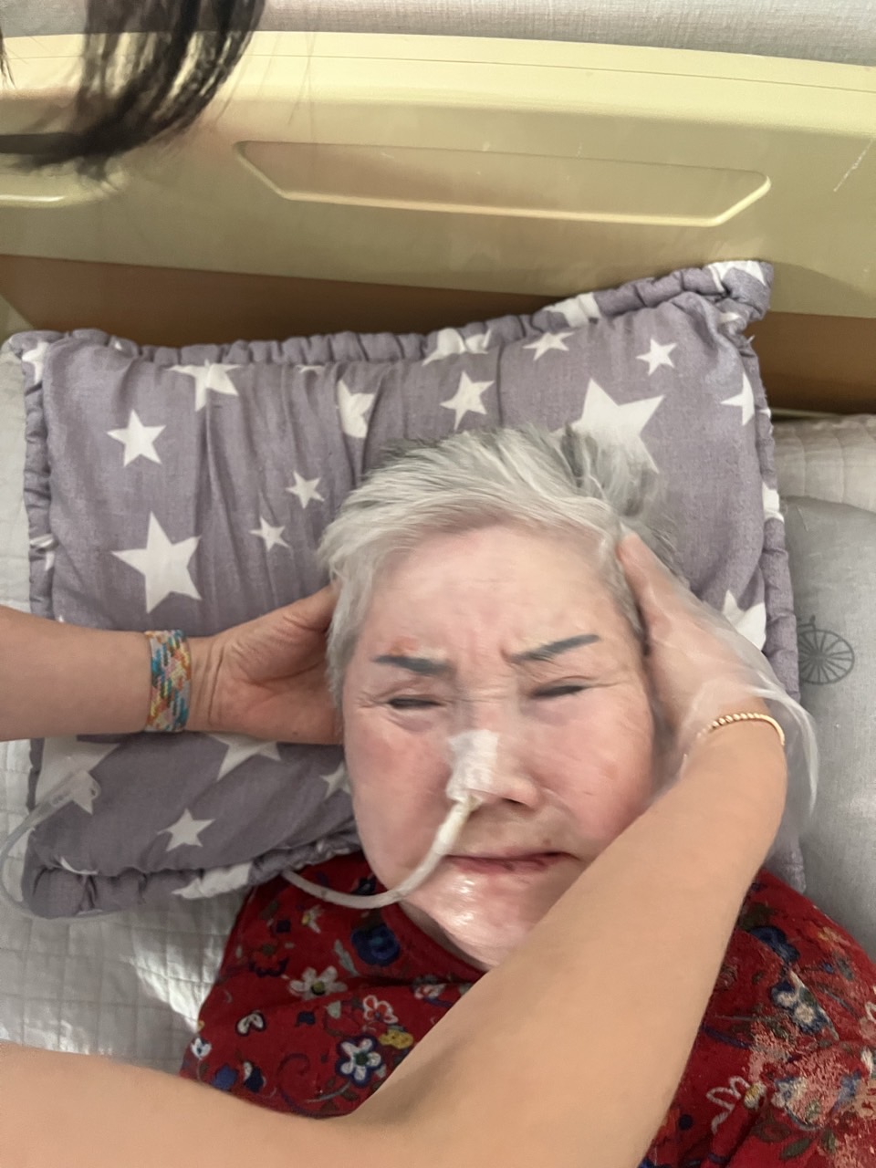 ② 진행 : 코에 오일 냄새를 맡게 하고, 관자놀이에 롤링기법으로 마사지를 해준다.