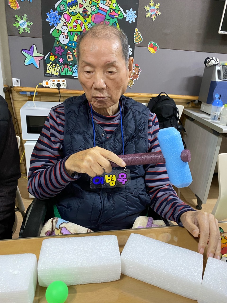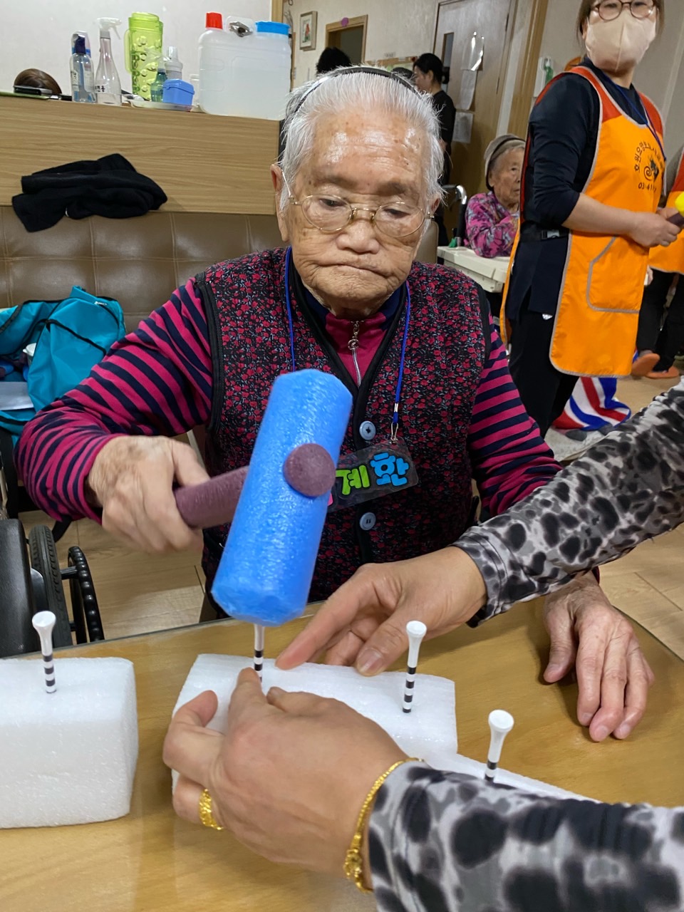 공을 망치로 터치해 정확한 위치에 떨어트릴 수 있도록 손목 힘의 강 약을 조절 할 수 있다