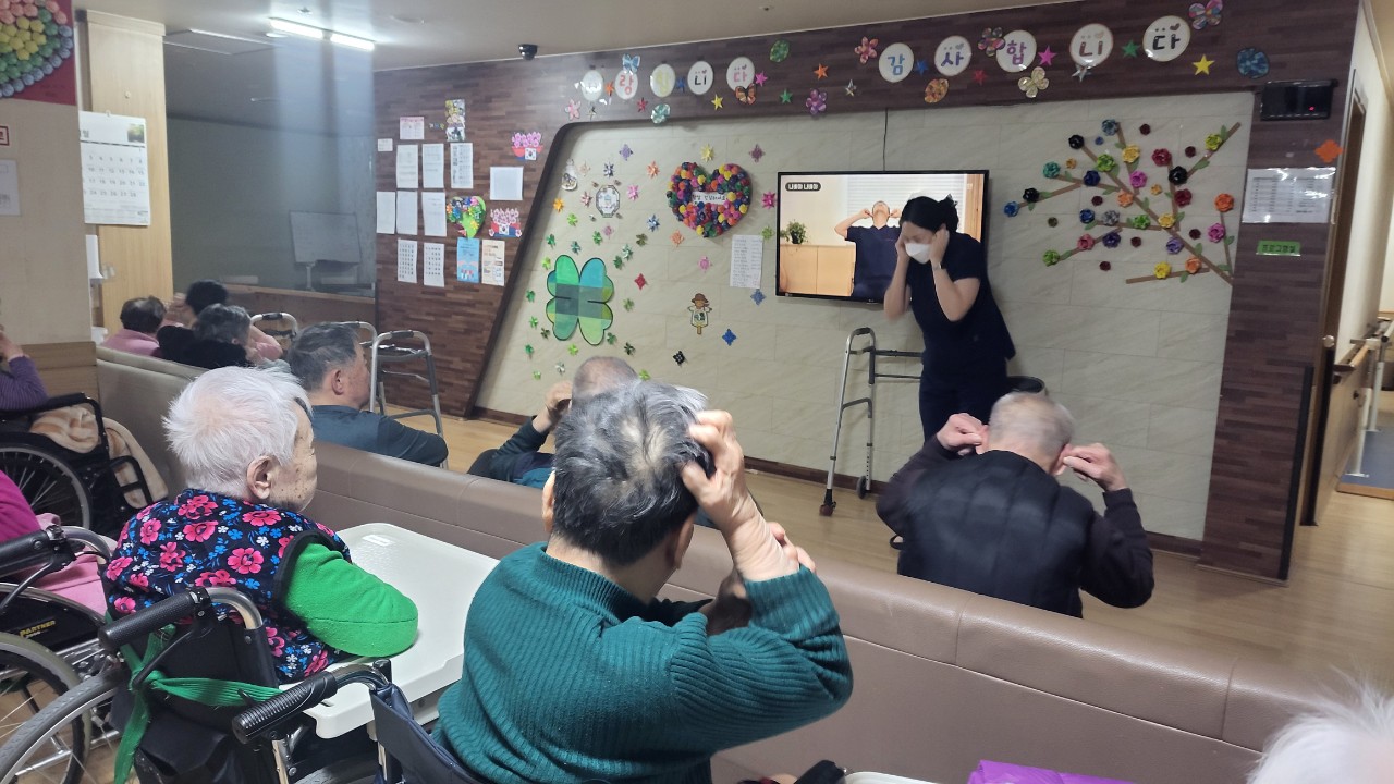 ② 운동은 단순하면서도 리듬감 있게 반복되는 동작으로 구성하고 음악을 함께 하는 것이 좋다.