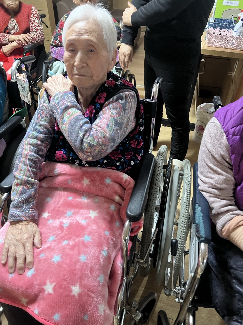 ① 어르신들을 중앙홀로 모신다. (모시기 힘든 어르신은 각방으로 찾아간다.)