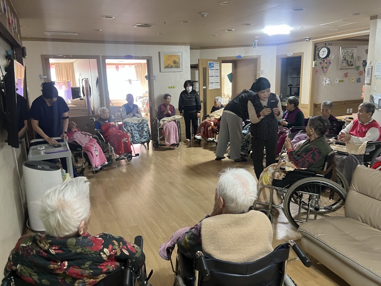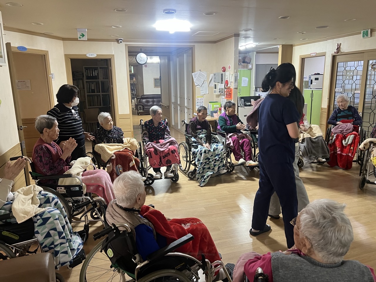 ① 어르신들을 중앙홀로 모신다. (모시기 힘든 어르신을 각 방으로 찾아간다.)