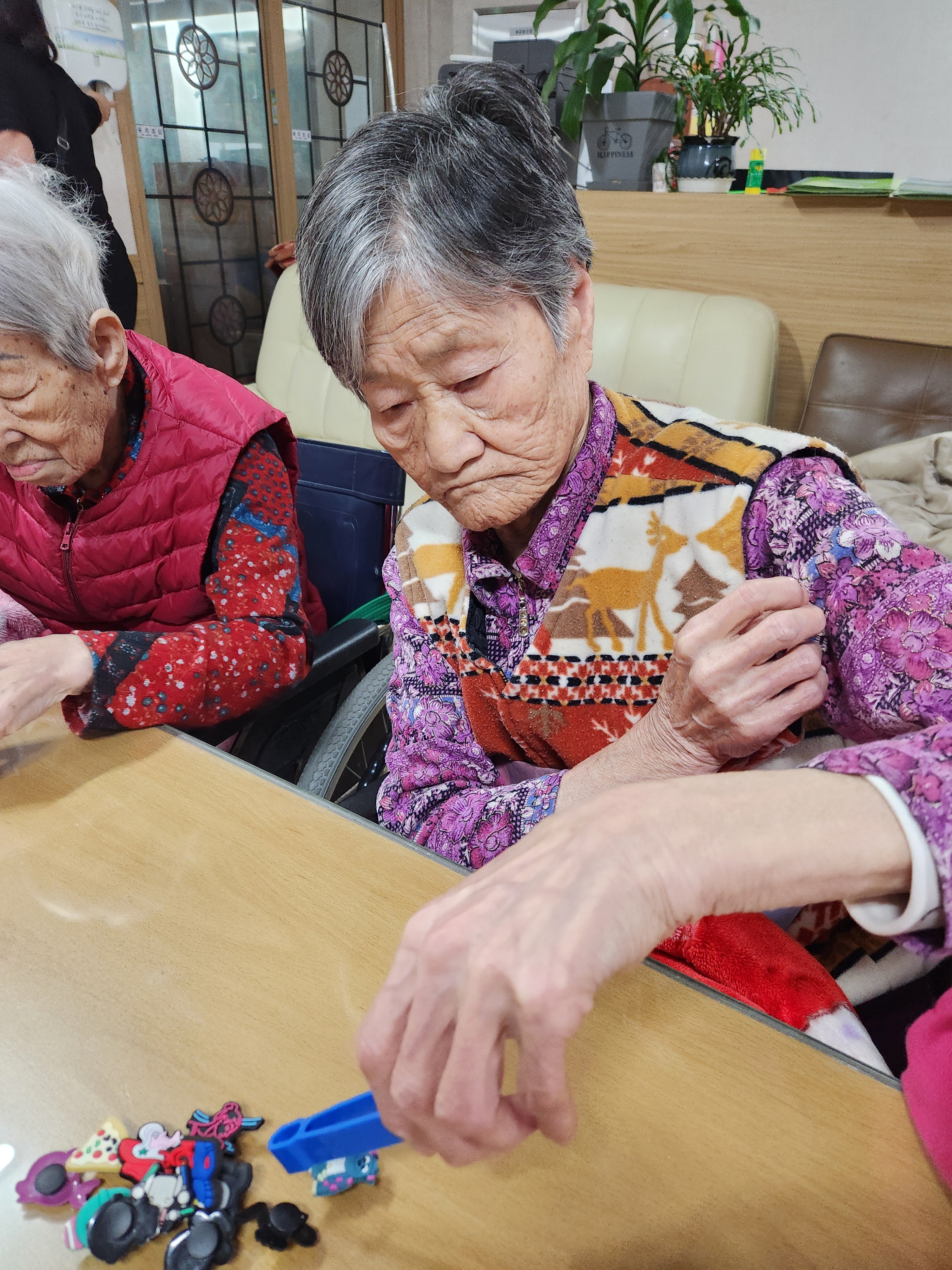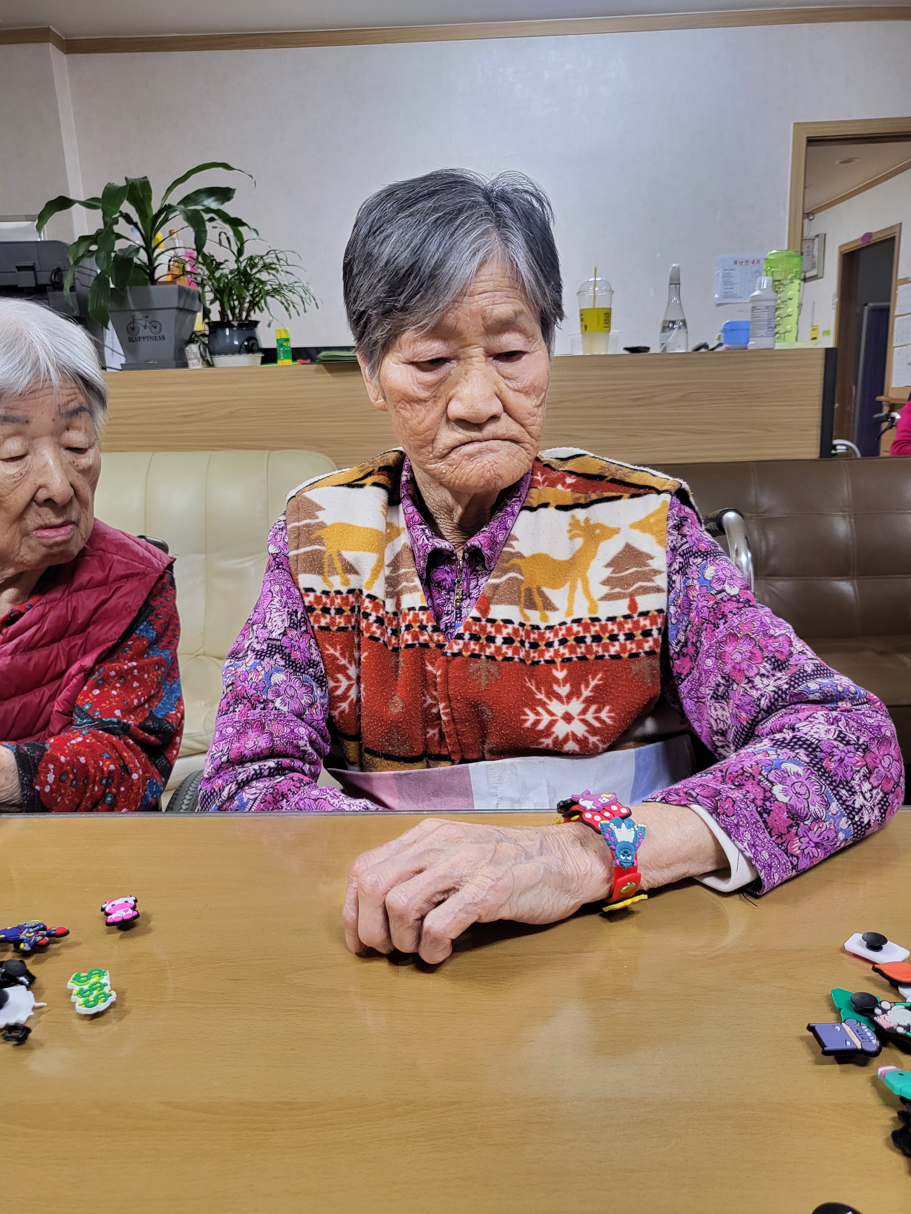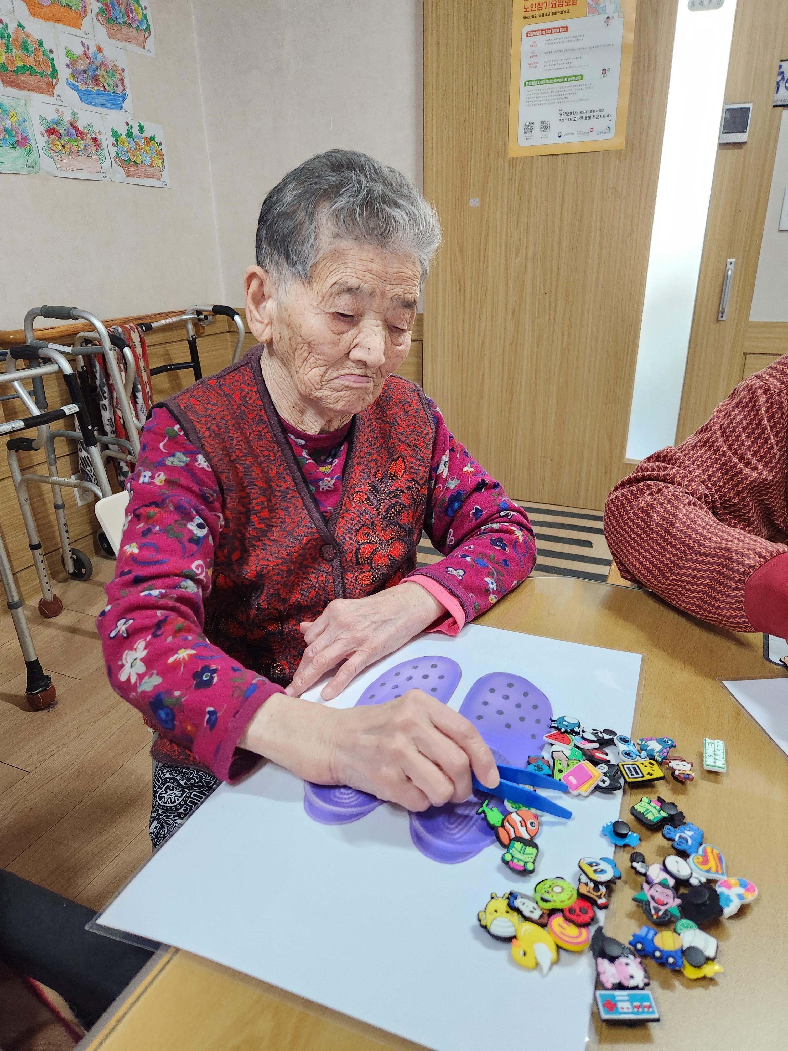 지비츠를 팔찌구멍에 끼웠다 빼면서 팔찌 및 그림을 꾸밀 수 있다.