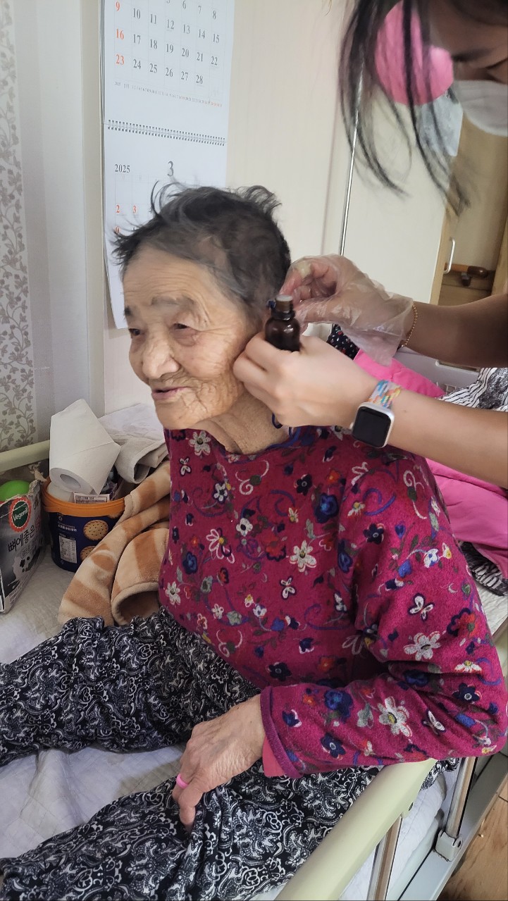 ① 방향성 약용식물에서 추출한 식물성오일로 심신의 균형을 회복시키는 아로마활동을 이용하여 어르신들의 스트레스를 해소하고 안정감을 드린다.