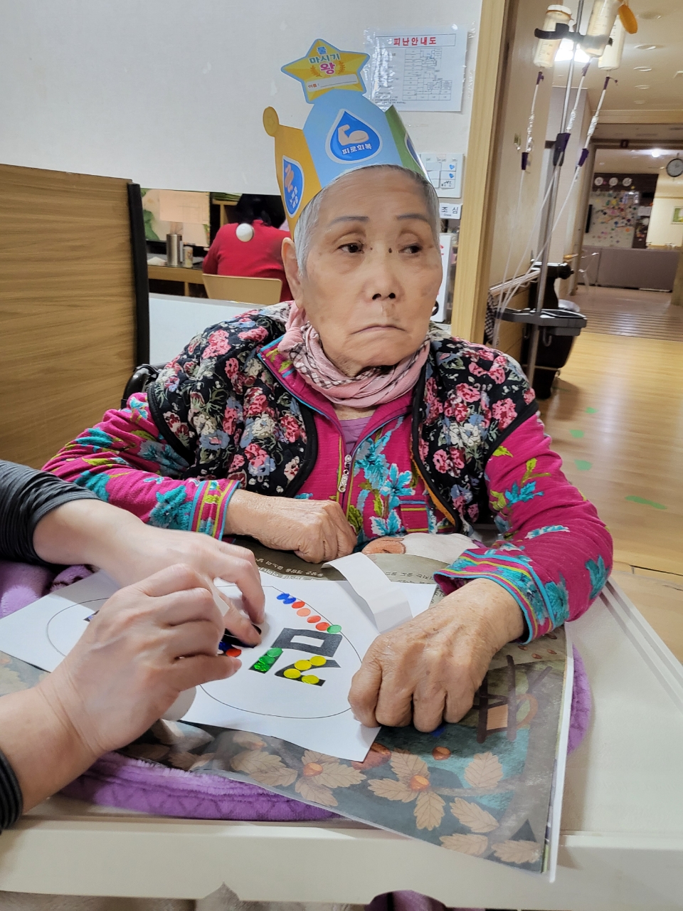 3. 스티커를 붙이면서 힘들어 하시는 어르신들을 도와드린다.