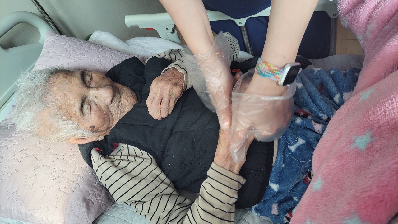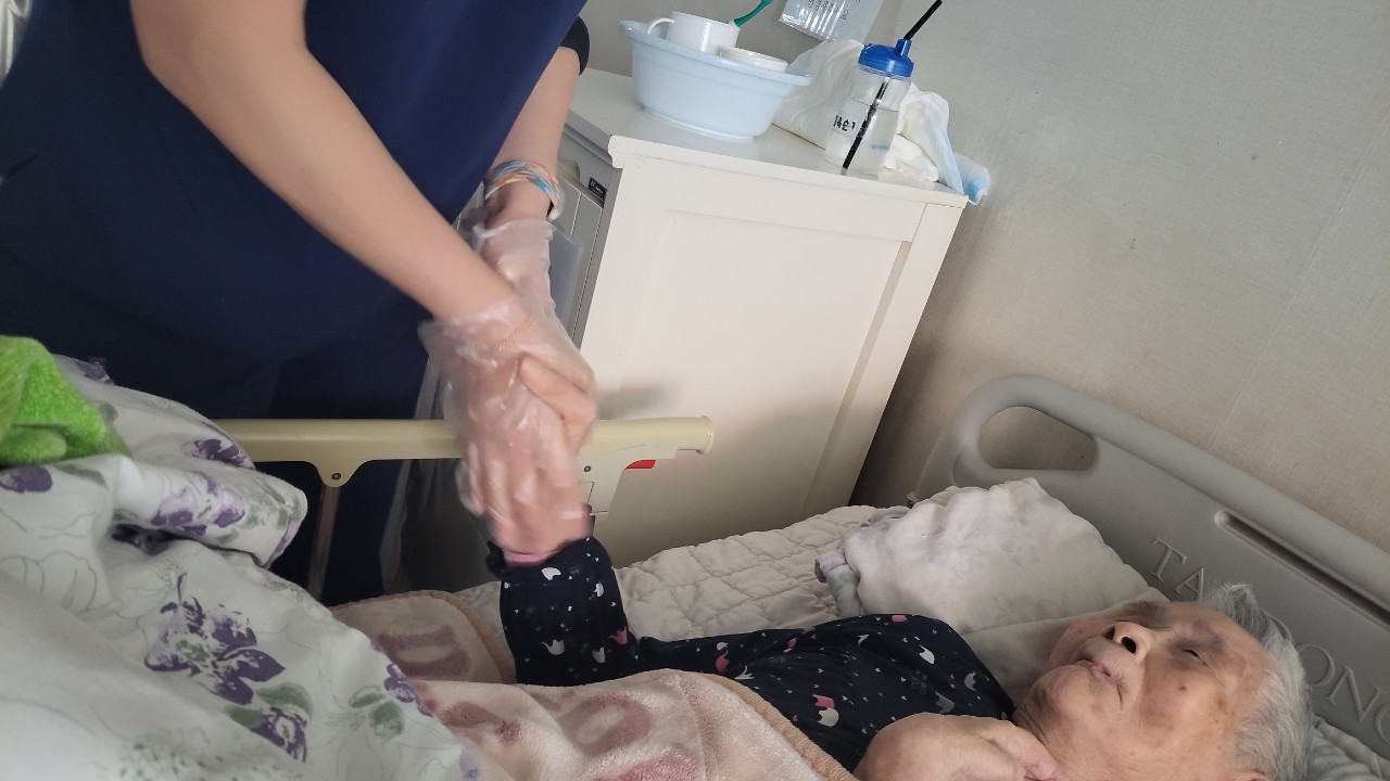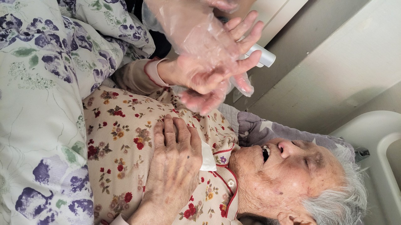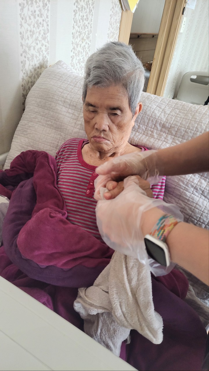 ④ 혈액순환을 위해 손바닥을 전체를 누르며 마사지 한다.