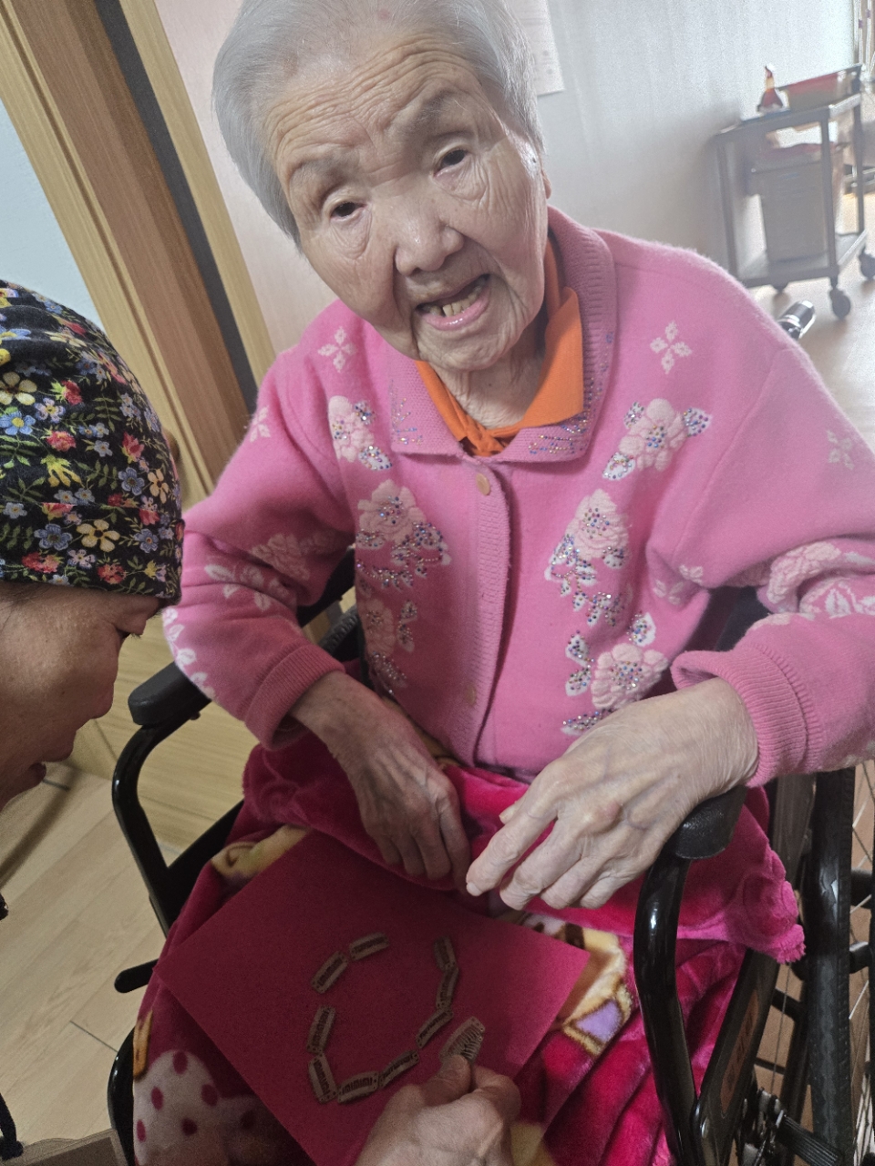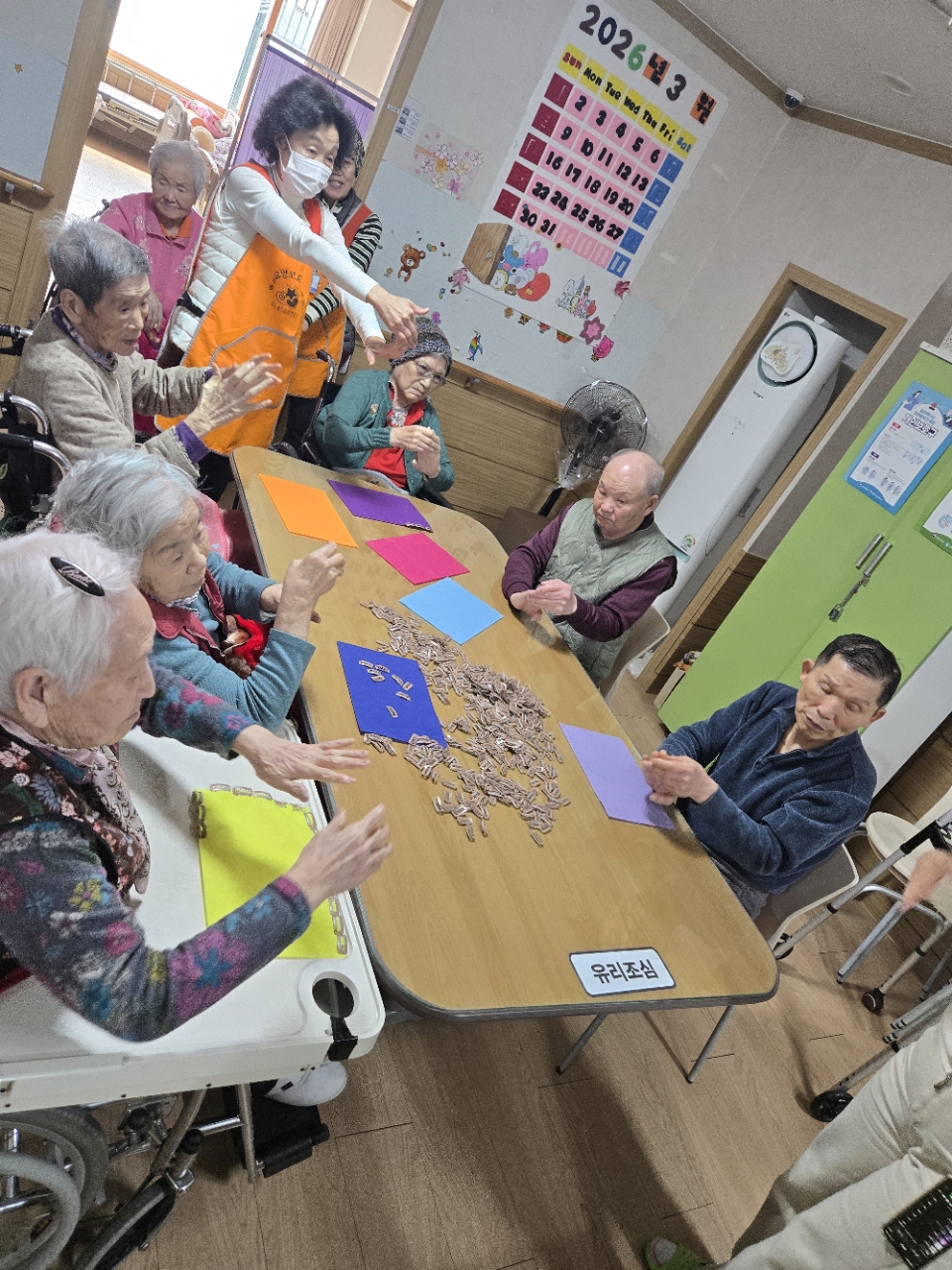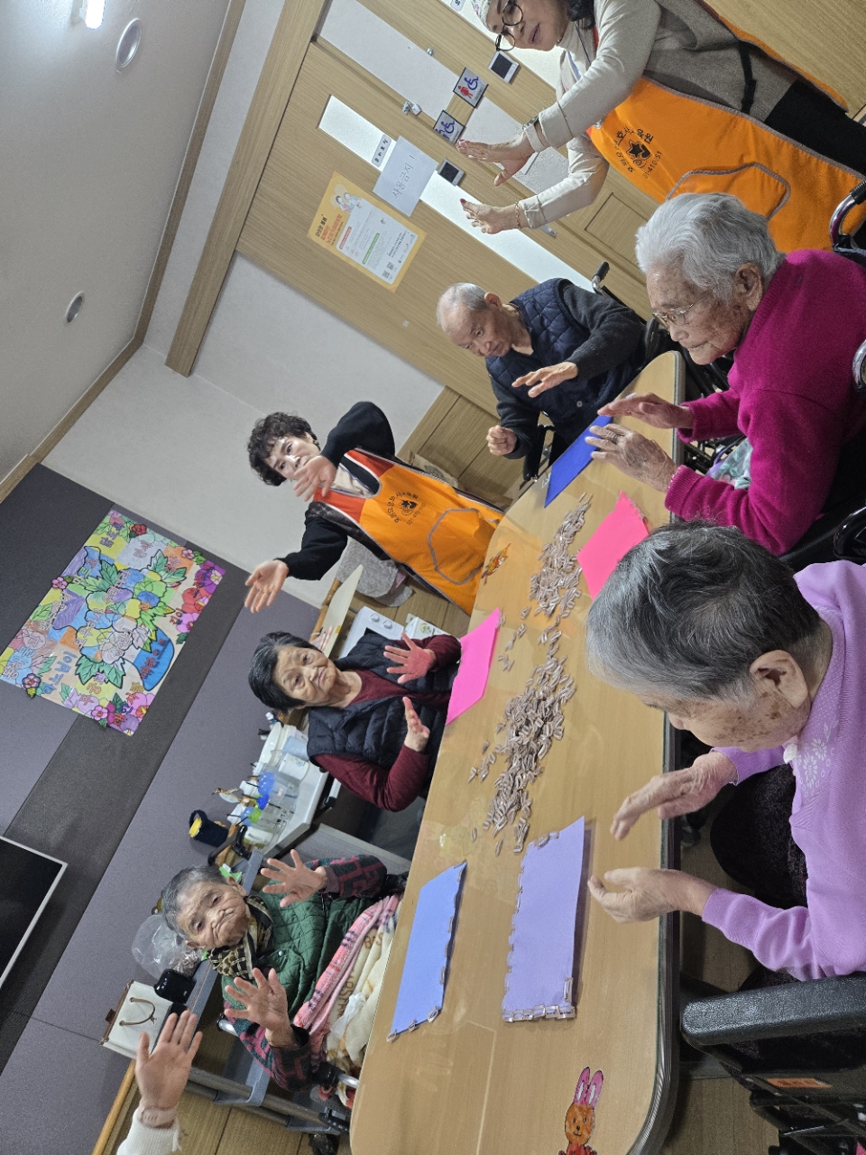 어르신들을 프로그램실로 모시고 인사를 나눕니다.