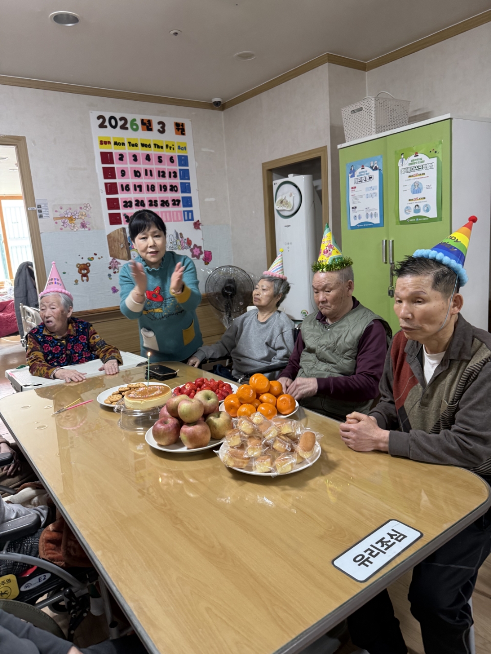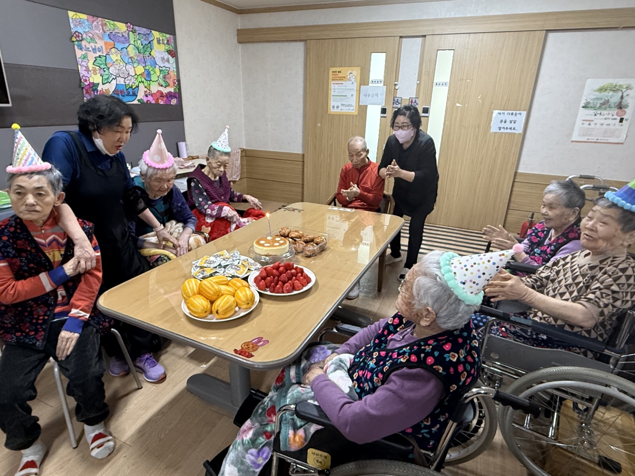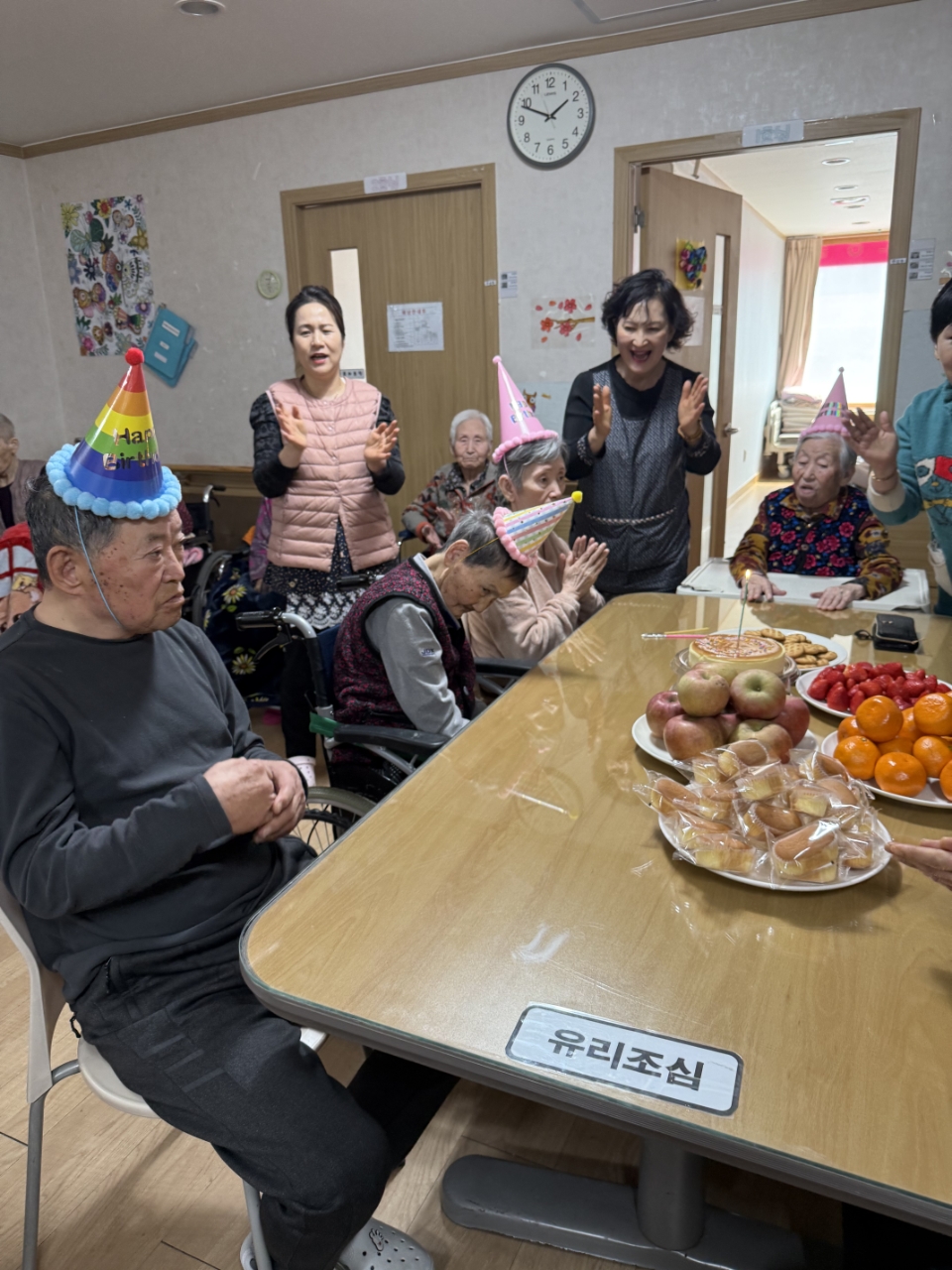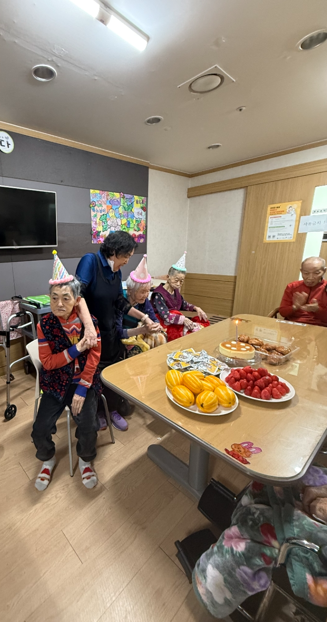 어르신들과 함께 박수로 축하하며 즐거운 분위기 속에서 따뜻한 생신잔치를 마무리하였습니다.
