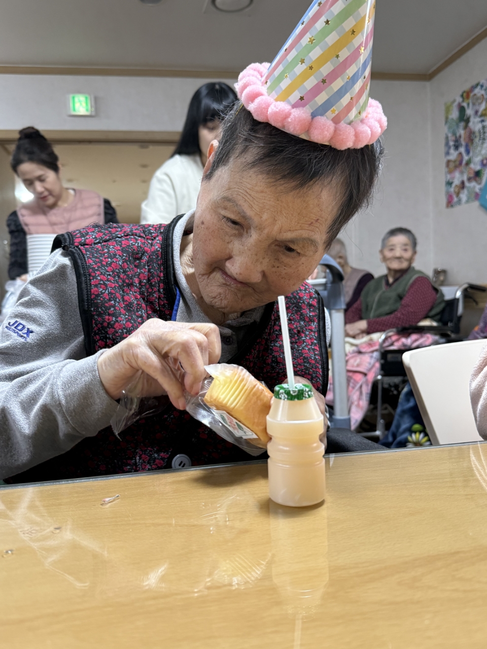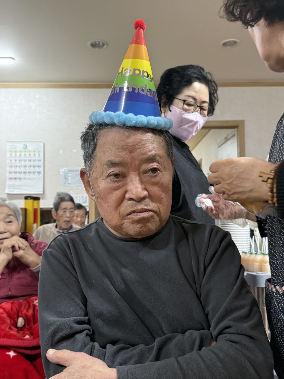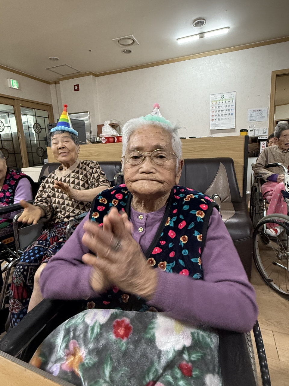 어르신들과 함께 박수로 축하하며 즐거운 분위기 속에서 따뜻한 생신잔치를 마무리하였습니다.