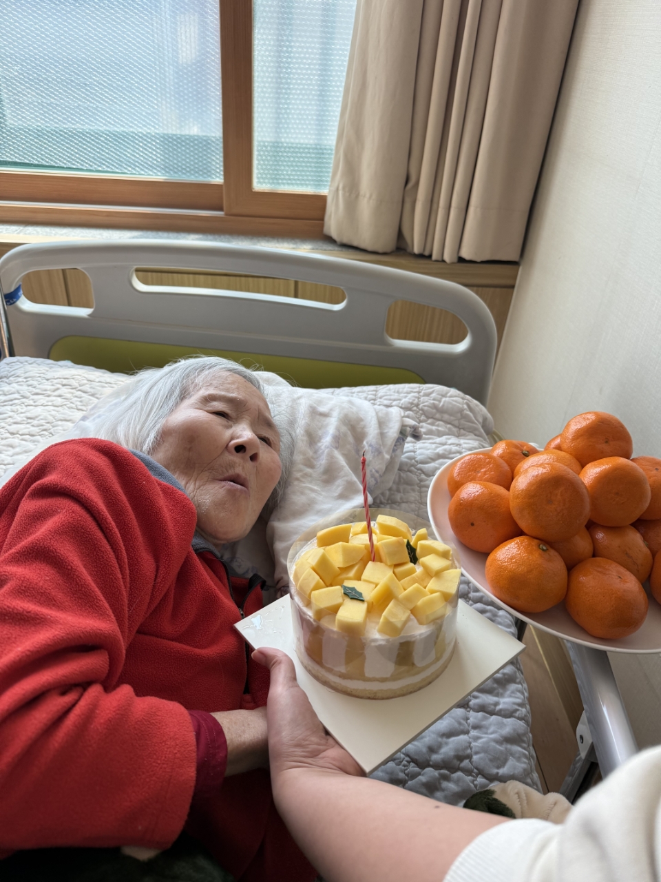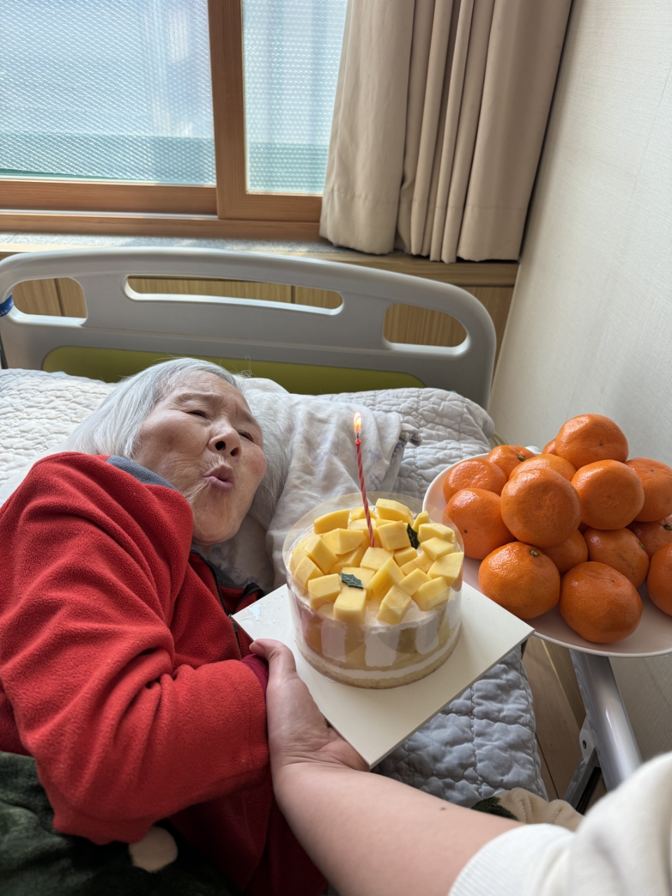 생신 축하 노래를 함께 부르며 축하 인사를 드리고 케이크 촛불을 끄는 시간을 가졌습니다.