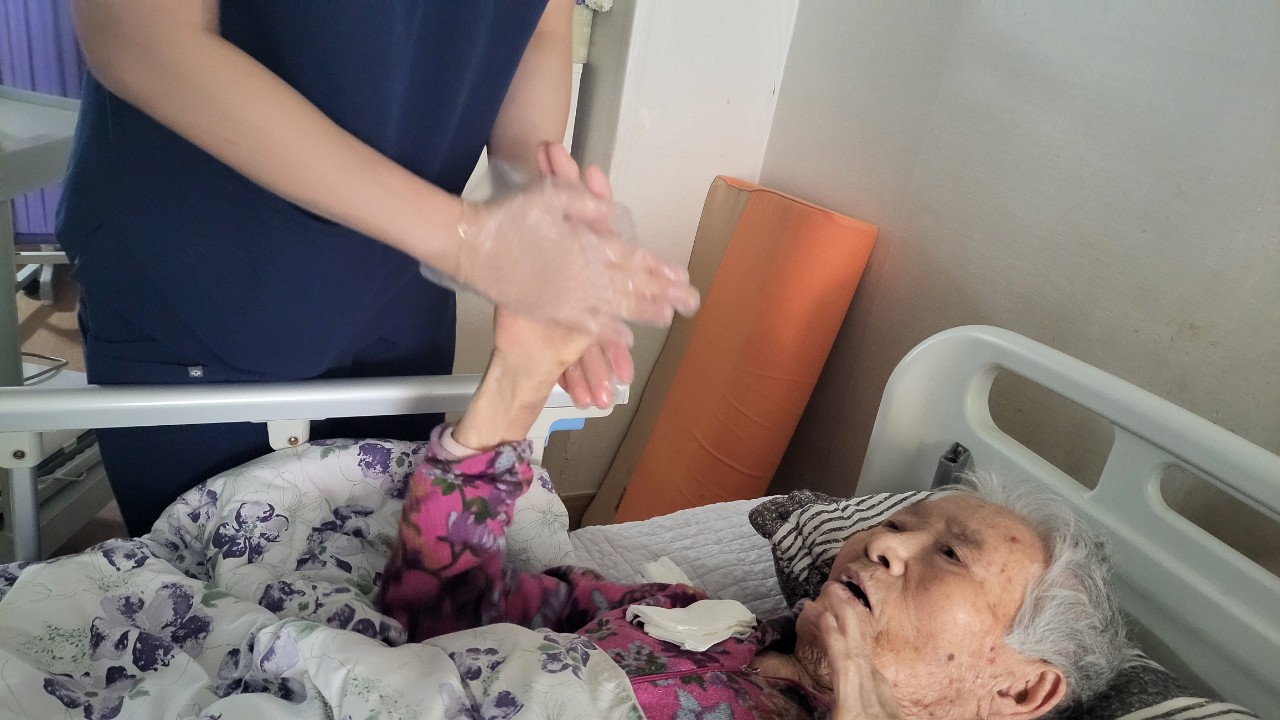 ④ 혈액순환을 위해 손바닥을 전체를 누르며 마사지 한다.