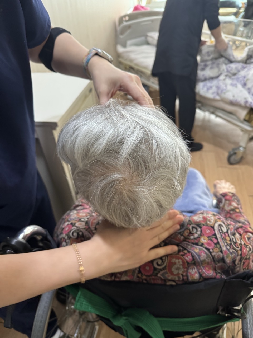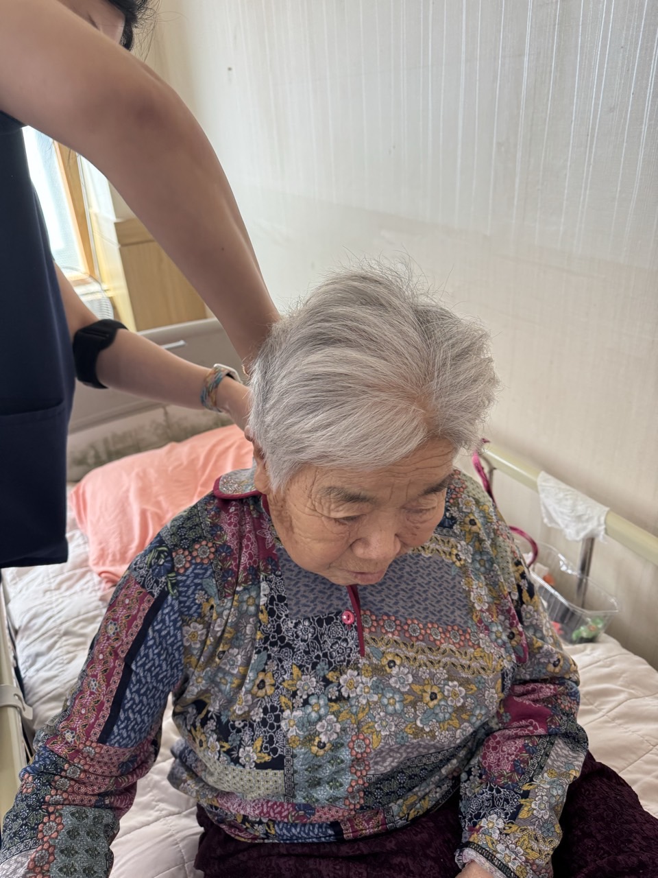 ② 진행 : 앉은자세에서 코에 오일냄새를 맡게 하고, 목 뒤쪽 후두하부를 롤링기법으로 마사지를 해준다