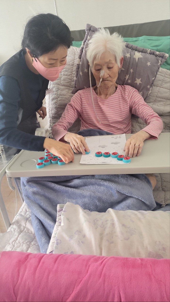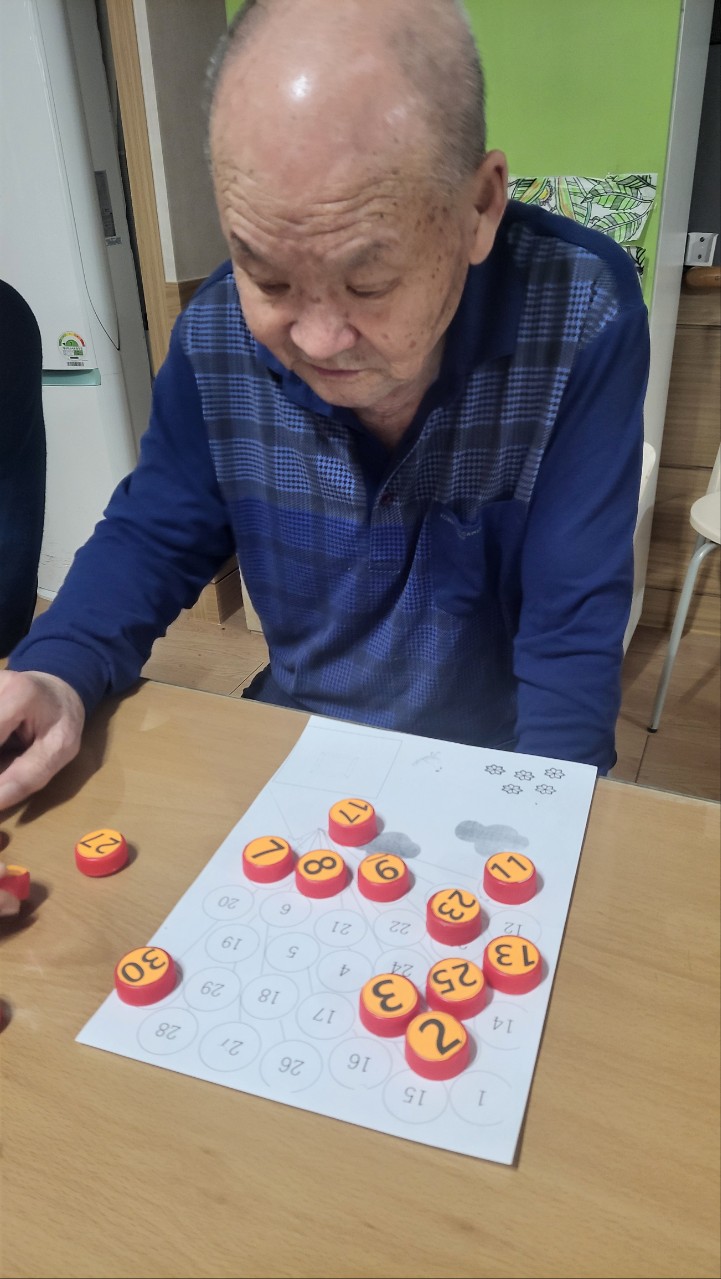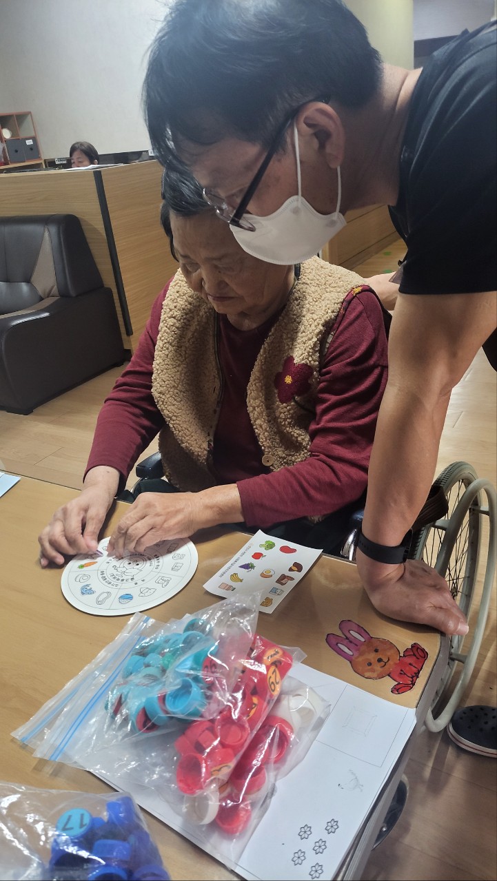 2. 활동지에 쓰여진 숫자순서에 맞추어 수가 적혀진 병뚜껑을 일치시킨다.