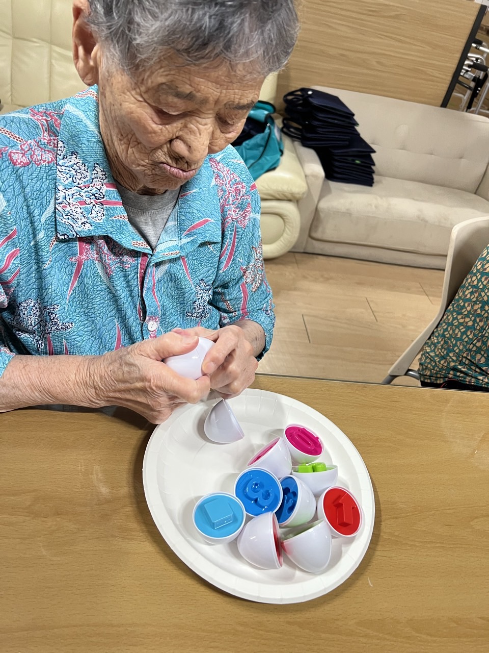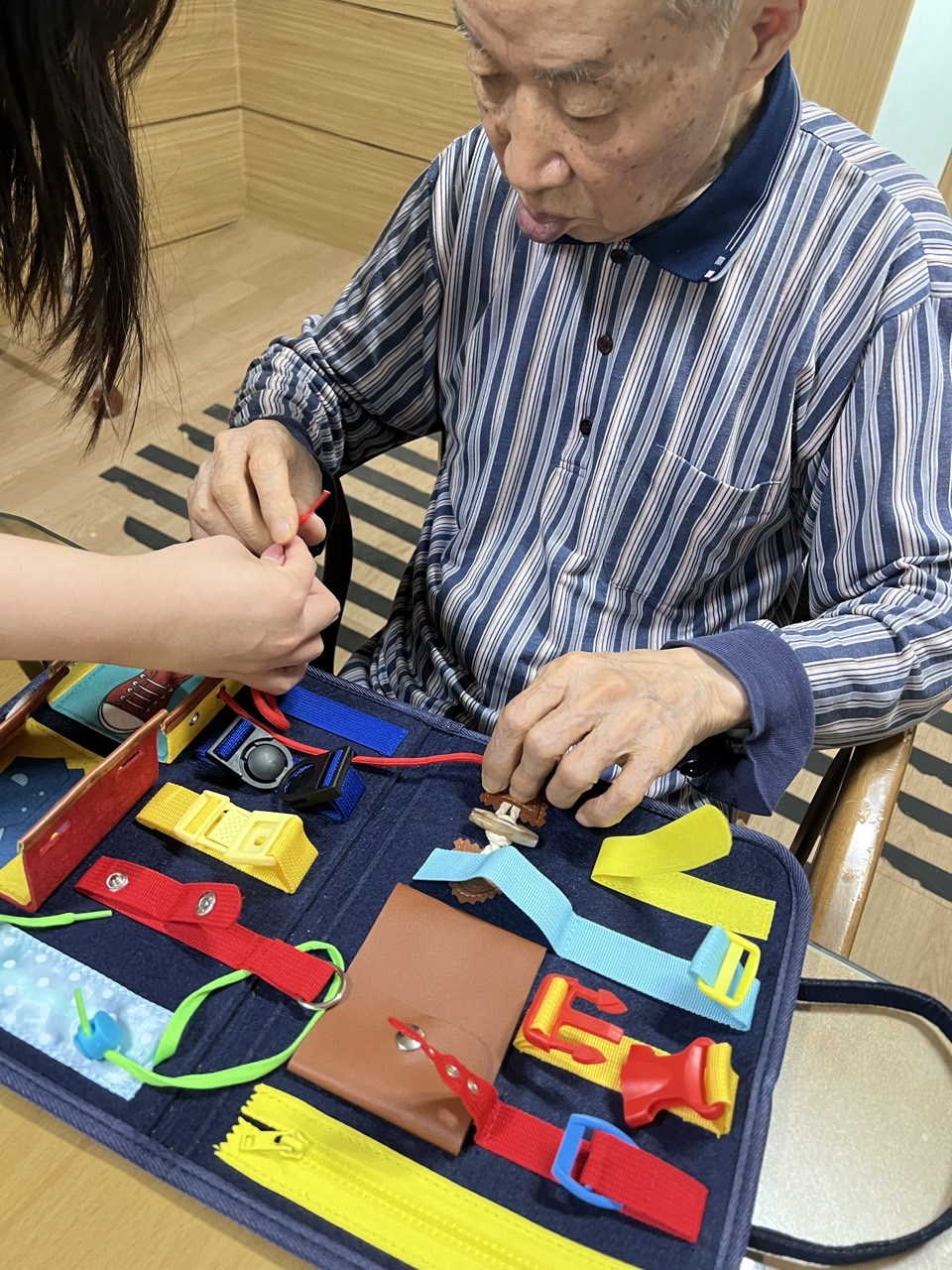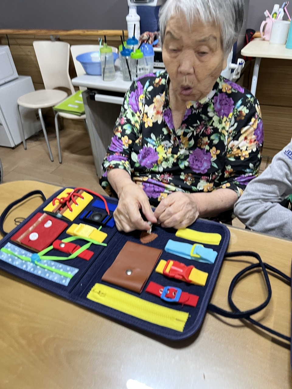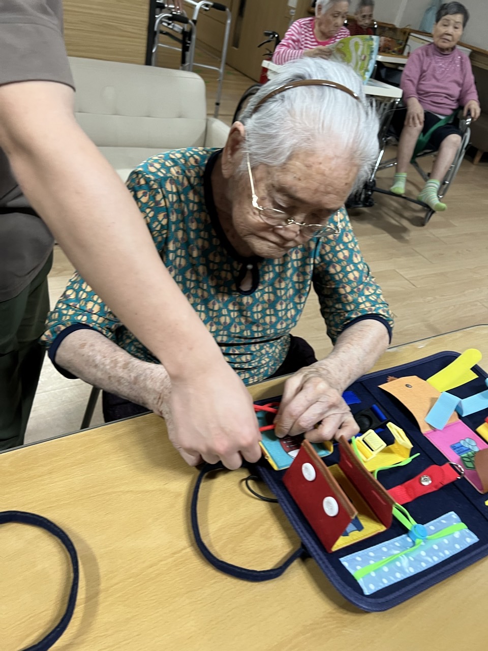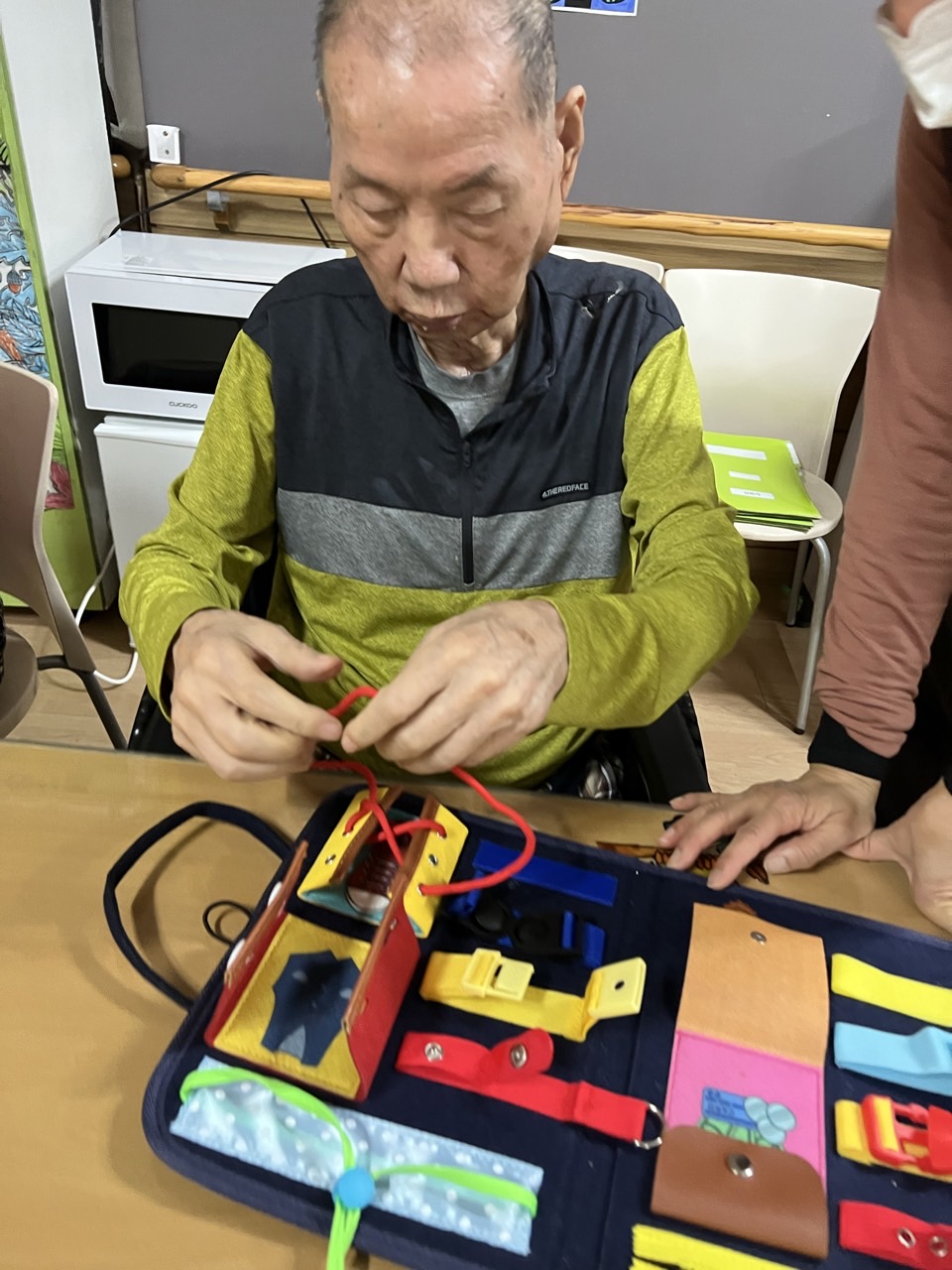다양한 재질의 소도구들을 올리고 채우고 꿰매고 묶는 소근육활동