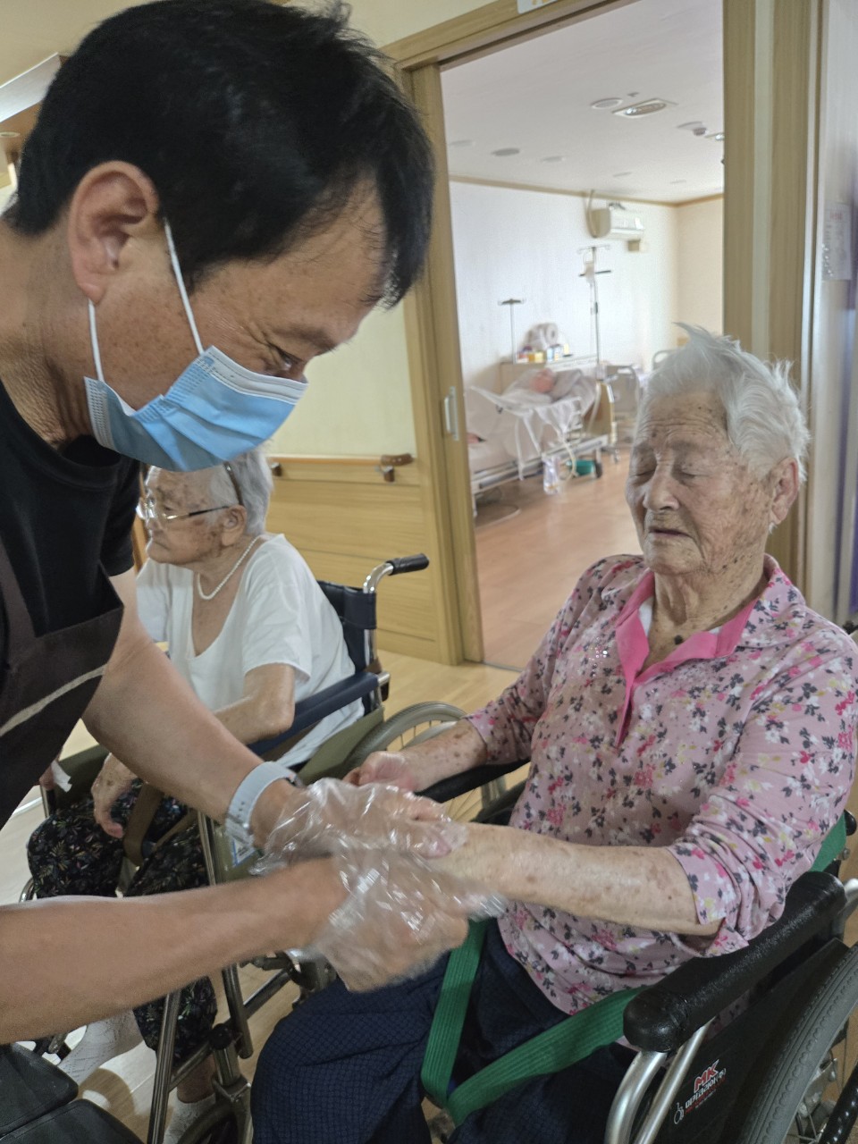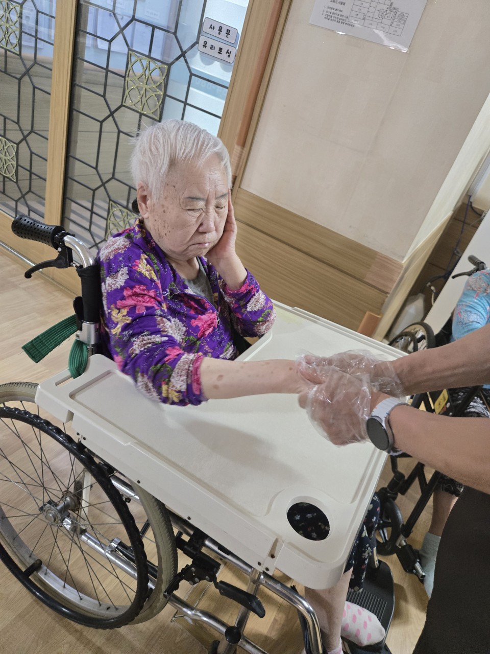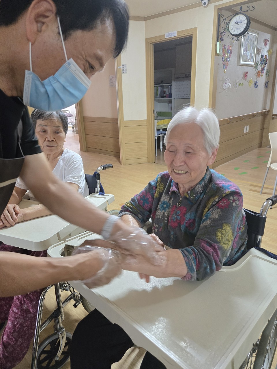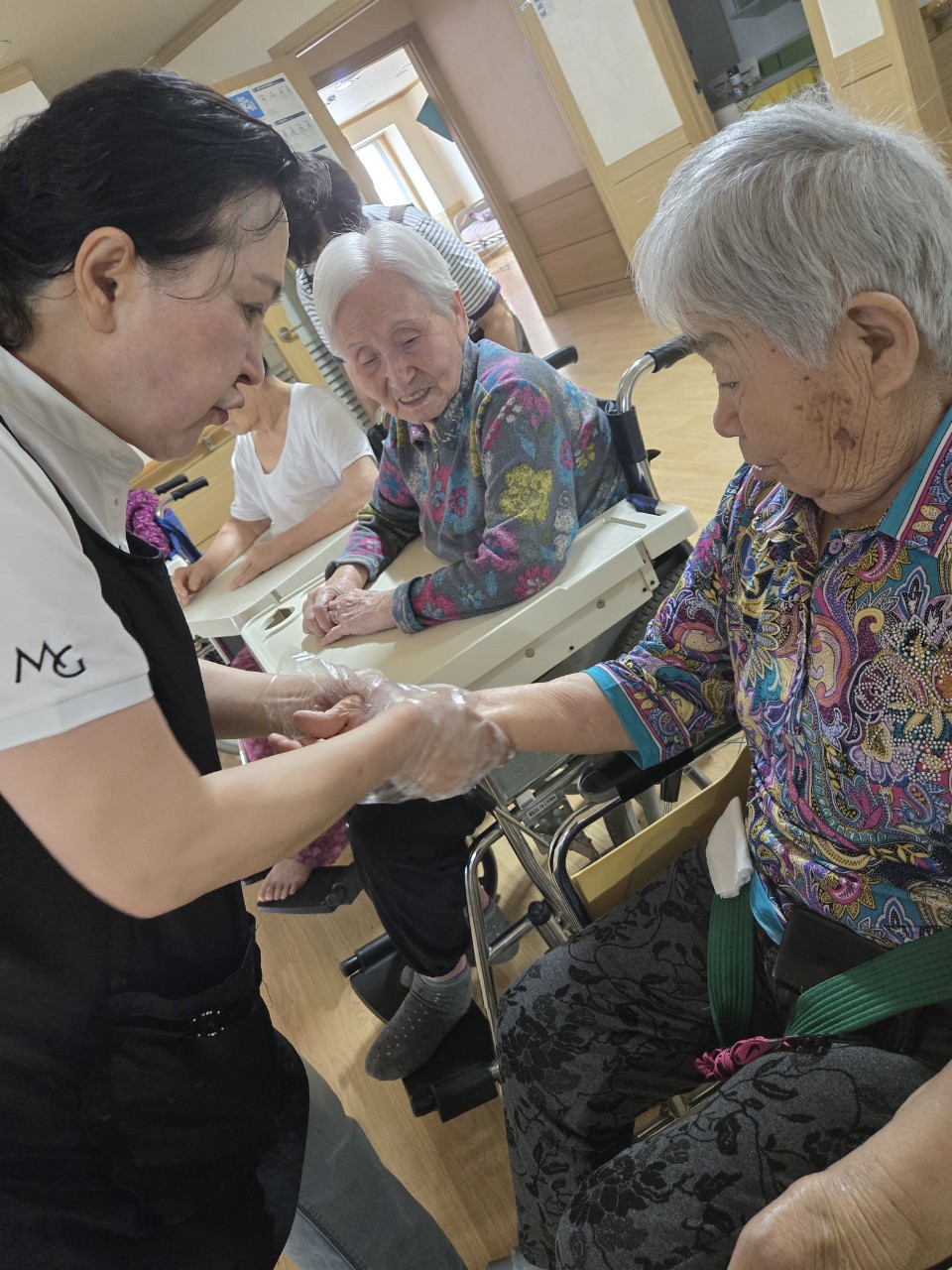① 손마사지 순서는 왼쪽→오른쪽 순으로 실시한다.